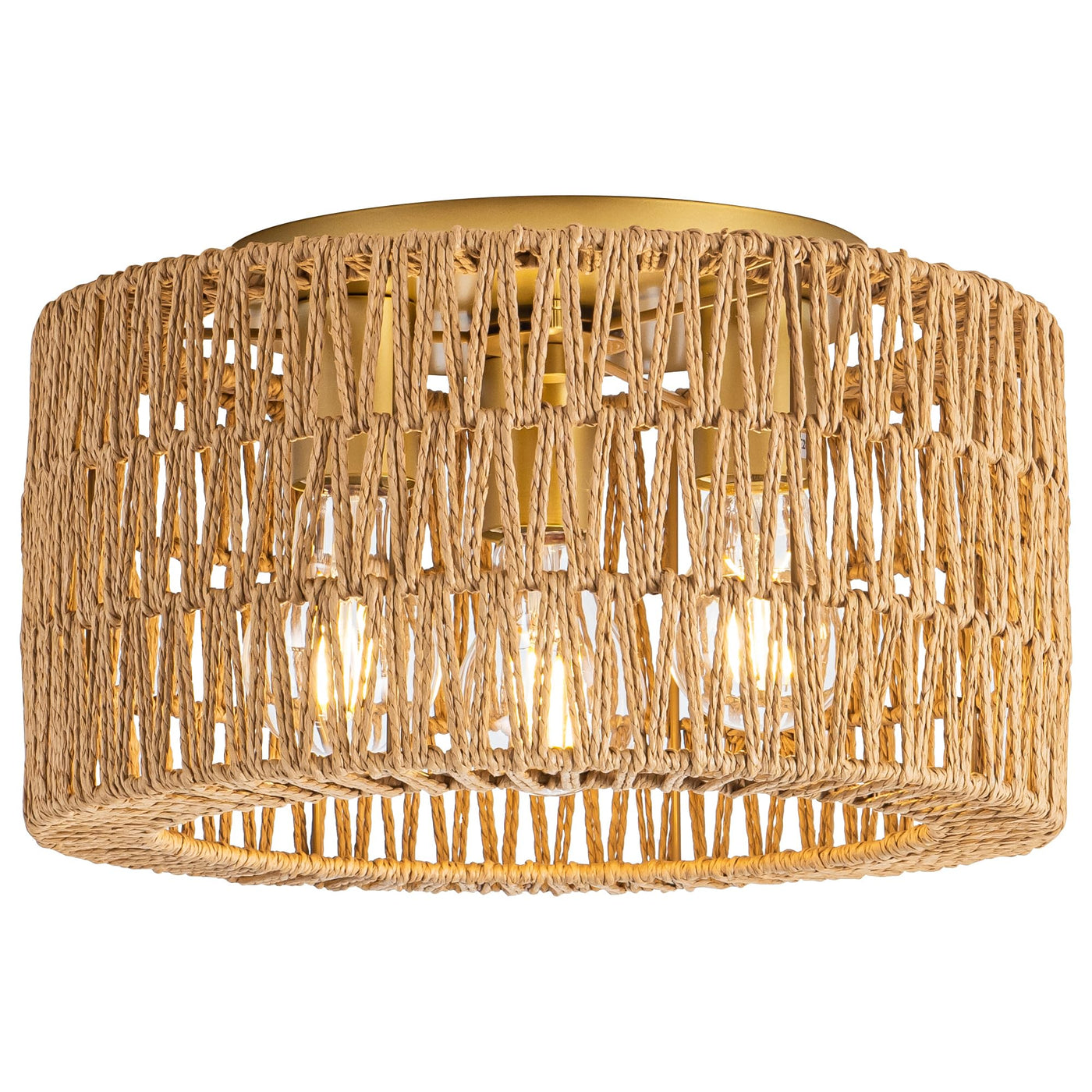 Rattan Ceiling Light Fixture, 3 Light Bohemian Modern Woven Ceiling Light, Boho Flush Mount Ceiling Light For Bedroom Living Roo