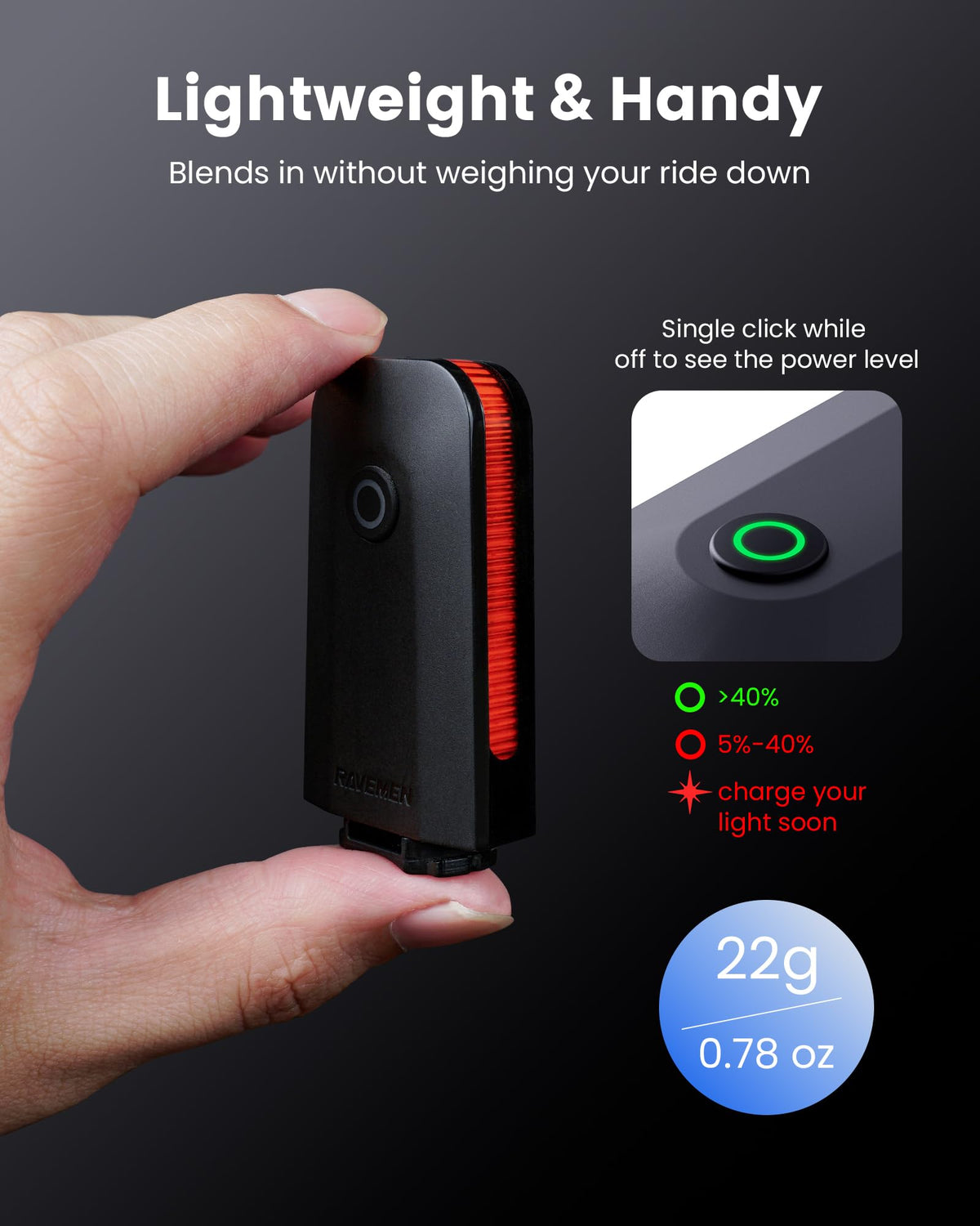 RAVEMEN CL01 Bike Tail Light, 300 Wide-Angle Rear Bicycle Light for Night Riding, Saddle Mount Bike Taillight Safety Accessories