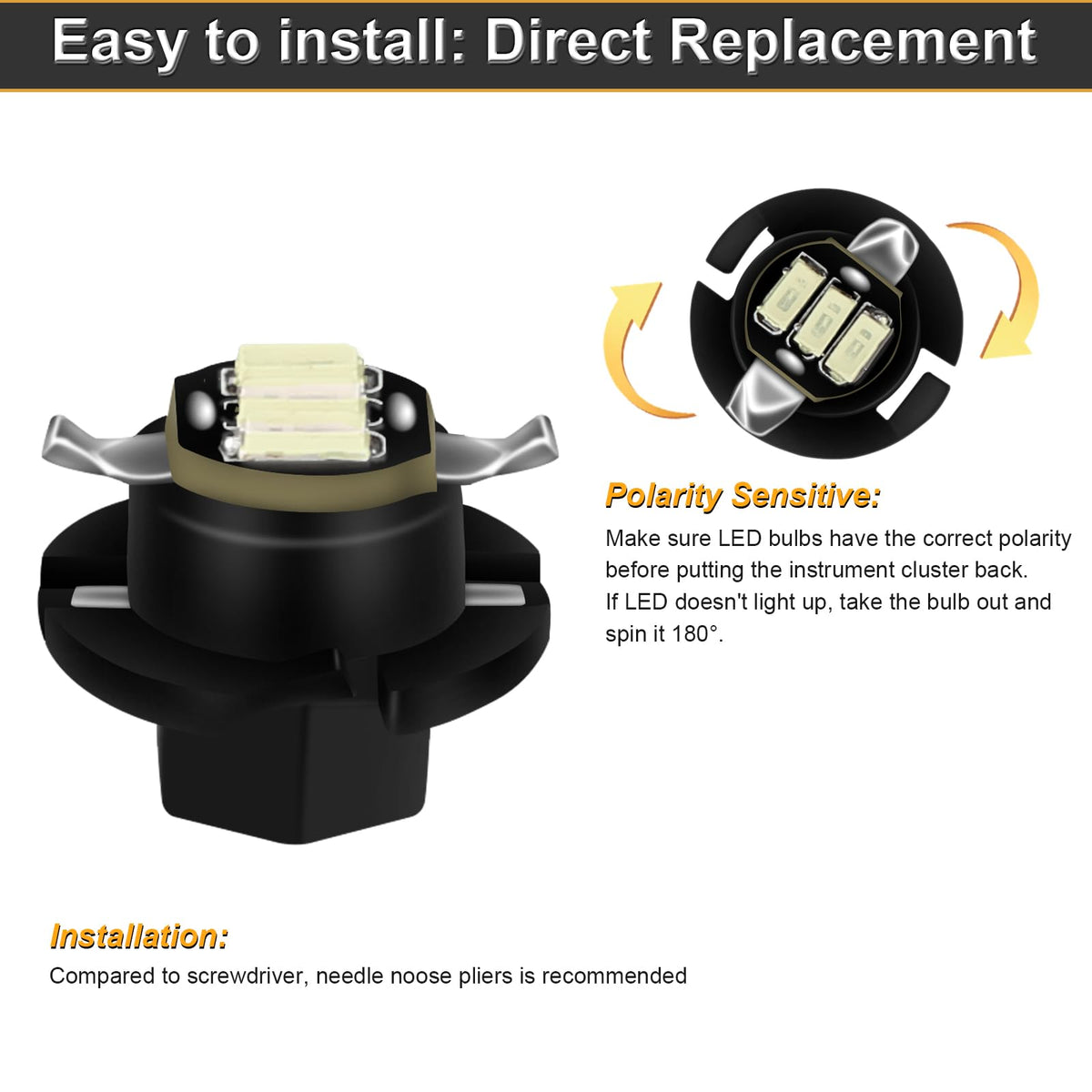 High Brightness: Each bulb features three SMD LED chips, providing ideal brightness for instrument clusters and cabins.