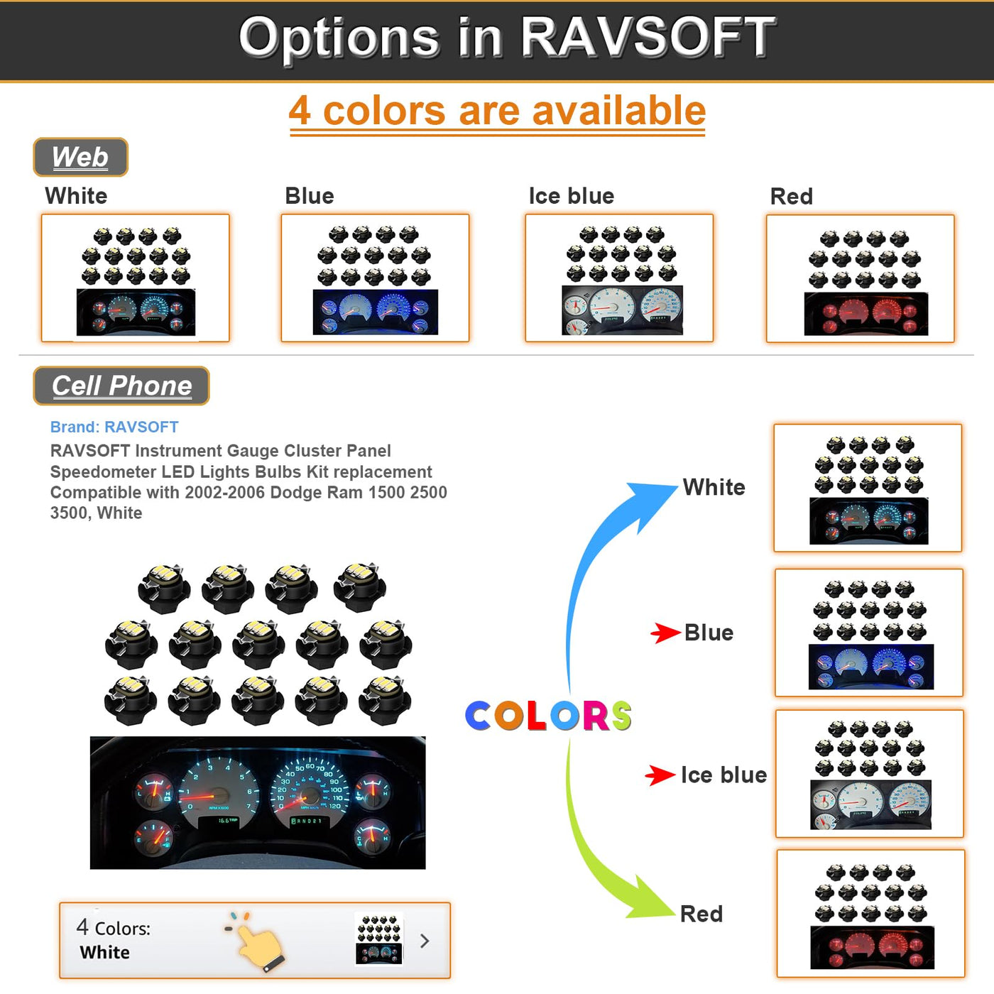 RAVSOFT Speedometer LED Bulbs Kit for 2002-2006 Dodge Ram 1500 2500 3500, Ice Blue, Pack of 14, Model RS457