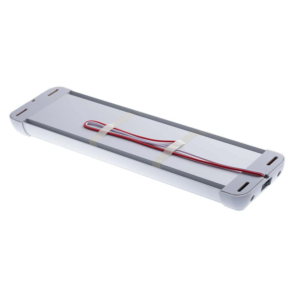Wattage: 12.4 Watt per Light Voltage: 12V/24V DC Current Draw: 1030 mA@12V, 490 mA@24V Switch Type: Integrated On/Off Rocker Switch Color Temperature: Cool-White Finish: Silver Housing & Grey End-Cap Working Temperature: -40? ~ +50? Connection Type: Hardwired Housing Materials: Aluminum Lens Materials: Polycarbonate Lens Color: Clear Power Wire Length: 15.7 in. (40 cm) Wire Gauge: 20 AWG Lumen Output: 1240 lm Waterproof Rating: Non-Waterproof Product Type: Interior Light Net Weight per light: 0.99 lbs. (0.45 kg) Product Height: 1.1 in. (28 mm) Product Length: 14.17 in. (360 mm) Product Width: 3.94 in. (100 mm) Quality Warranty: 2 Years