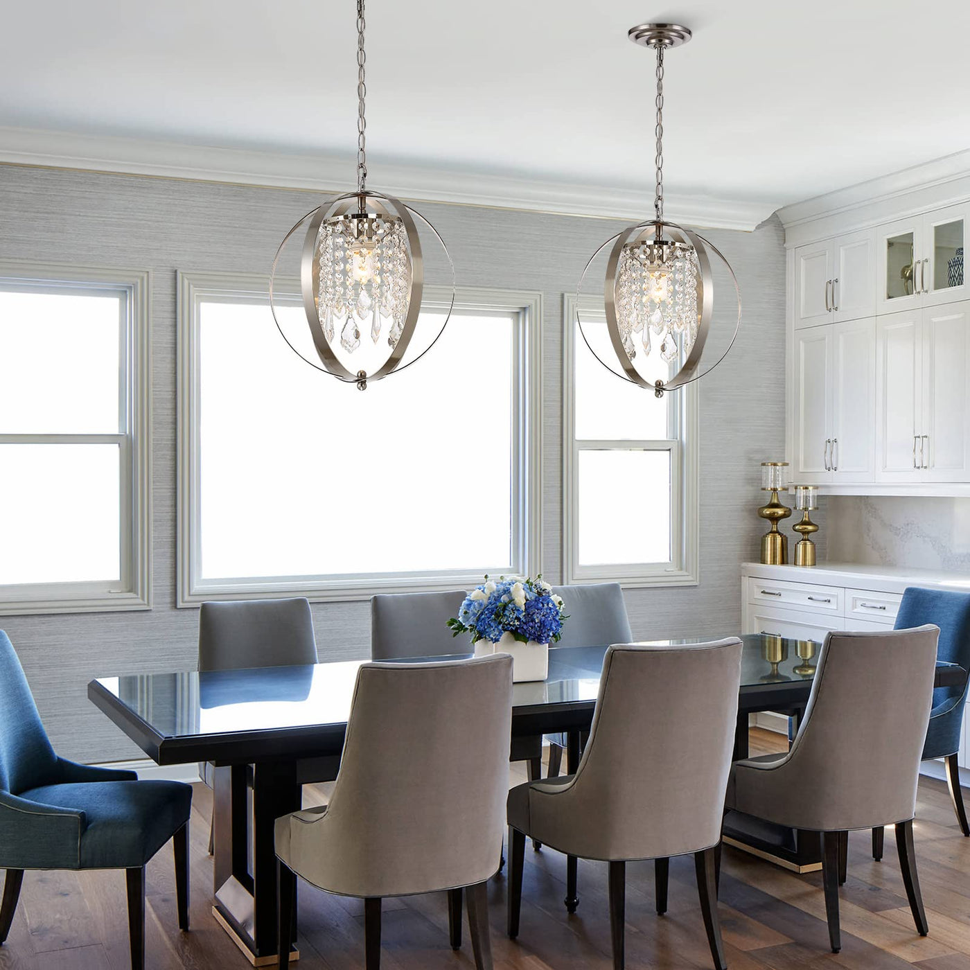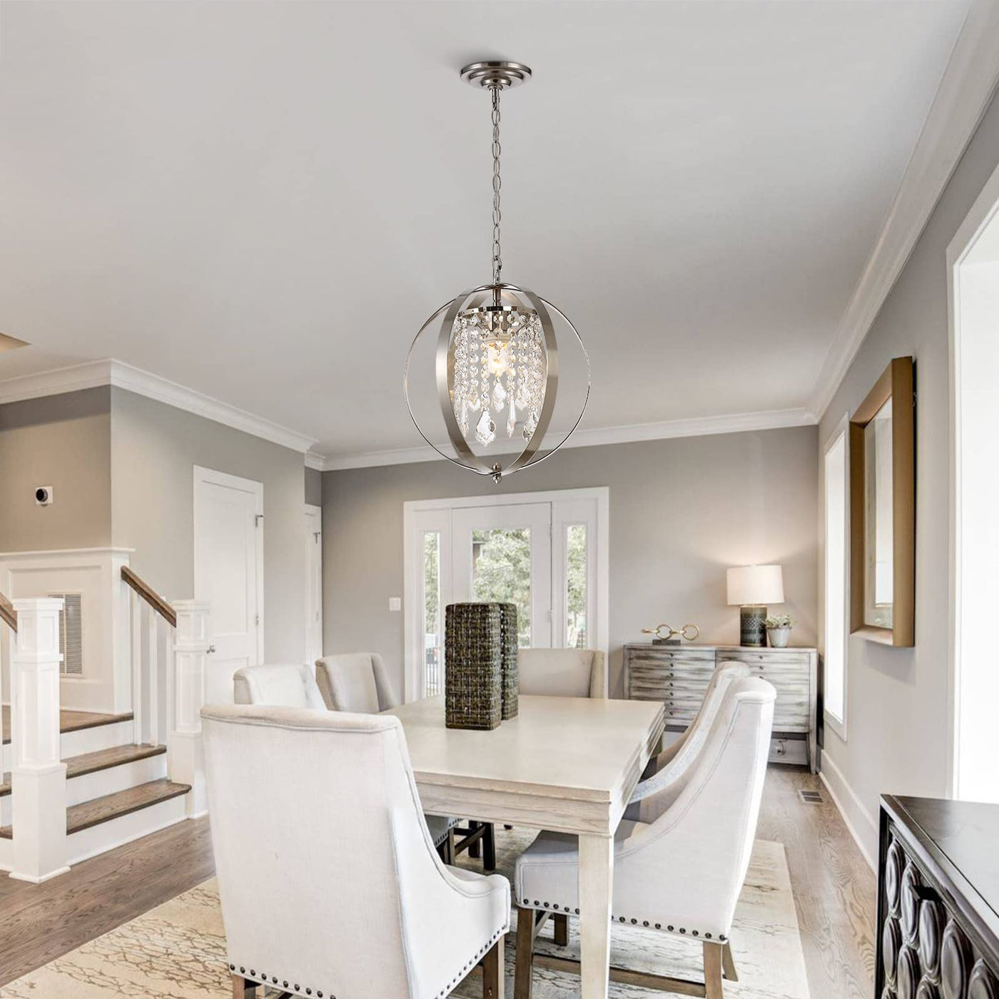 Raymalux Chandelier Mini Chrome Chandelier Iron Ceiling Light Fixture For Bedroom,Living Room,Dining Room Specification Fixture Material: Metal Shade Material: Crystal Fixture Color:Chrome Shade Color: Clear / Transparent Crystal Type: K9 Crystal Number Of Lights: 1 (Bulb Not Included) Bulb Base:1 X E26 Light Size: 10 Inches X10 Inches Weight: About 5 Lbs Suggested Room Fit: Dining Room, Living Room, Bedroom, Foyer, Office.