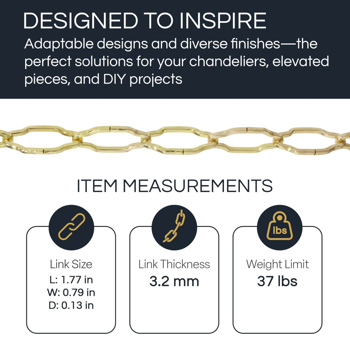Q: What kind of projects is this chain suitable for?A: This decorative chain is perfect for a variety of projects, including hanging lighting fixtures, mirrors, frames, planters, and for making curtain ties and pulls.