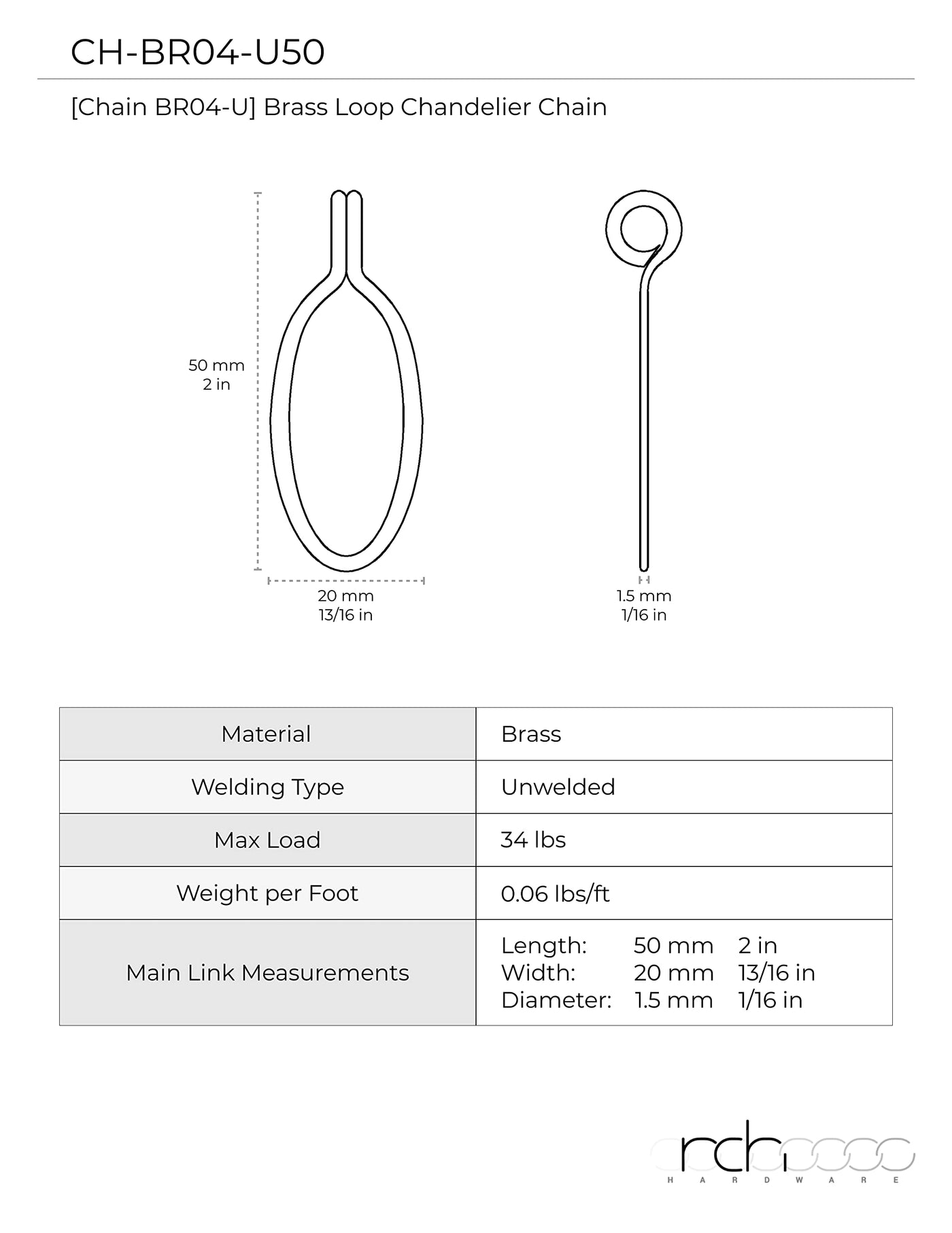 Lightweight chain weight of 0.06 lbs per foot for easy installation.