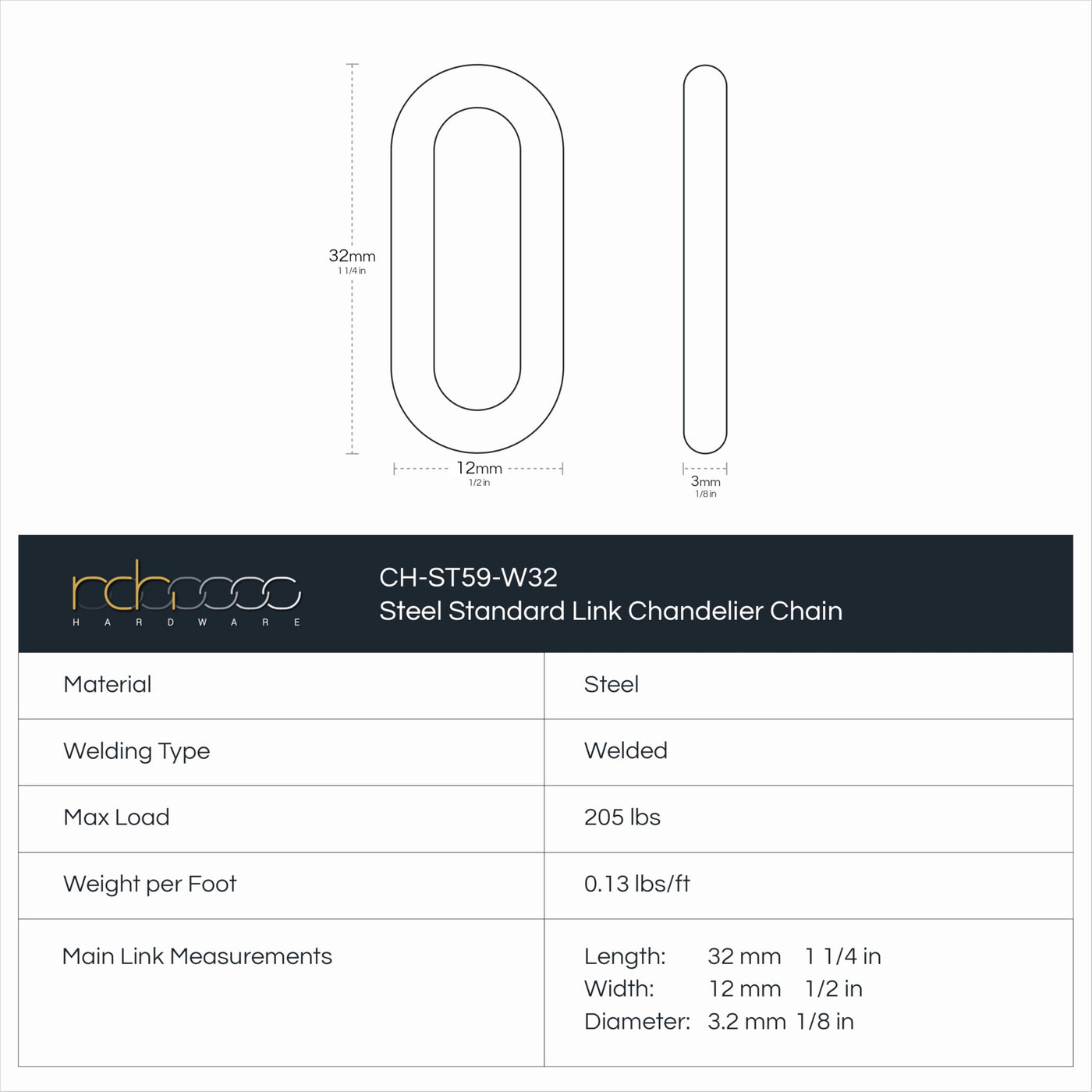 Q: What material is the RCH Hardware chain made of?A: The RCH Hardware chain is made of solid steel, ensuring durability and strength.
