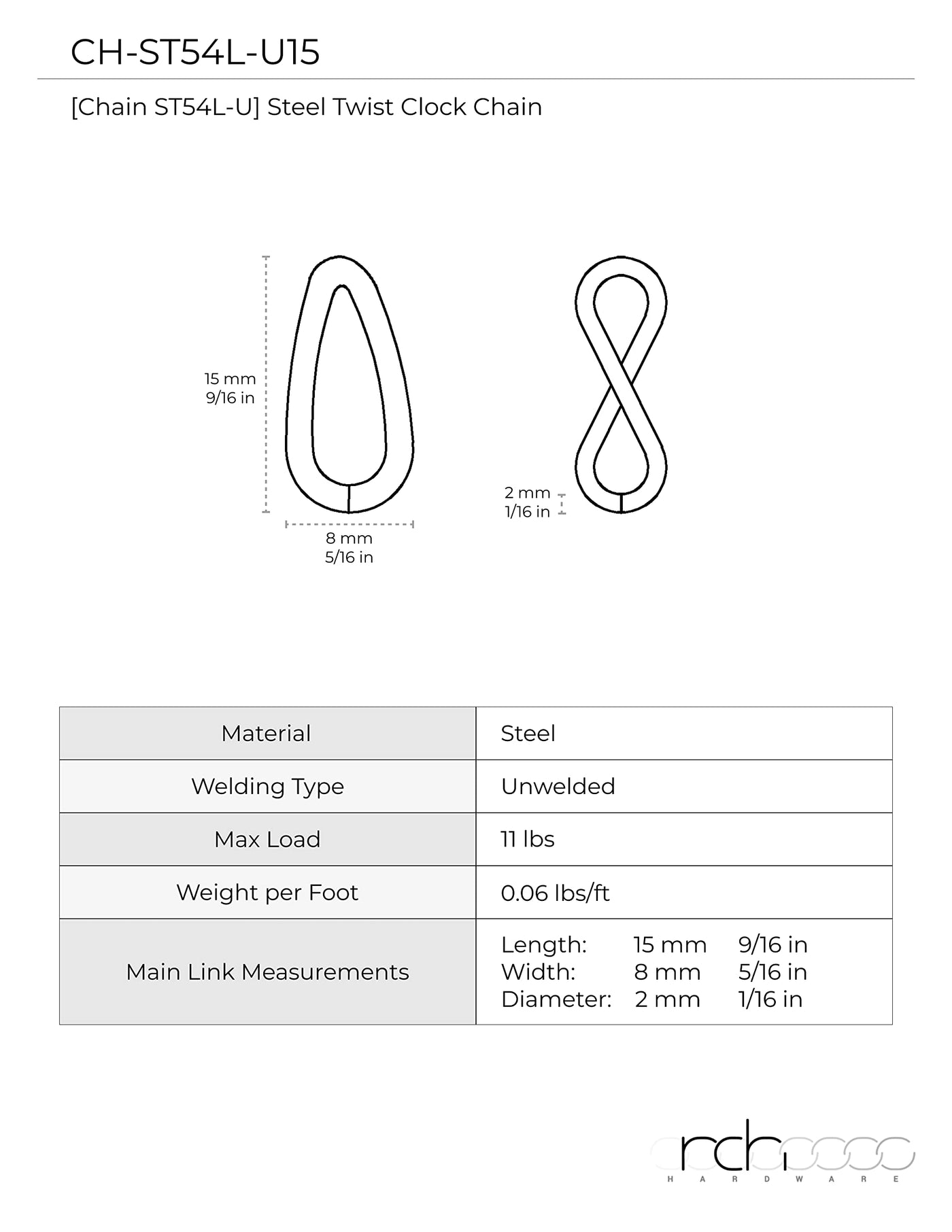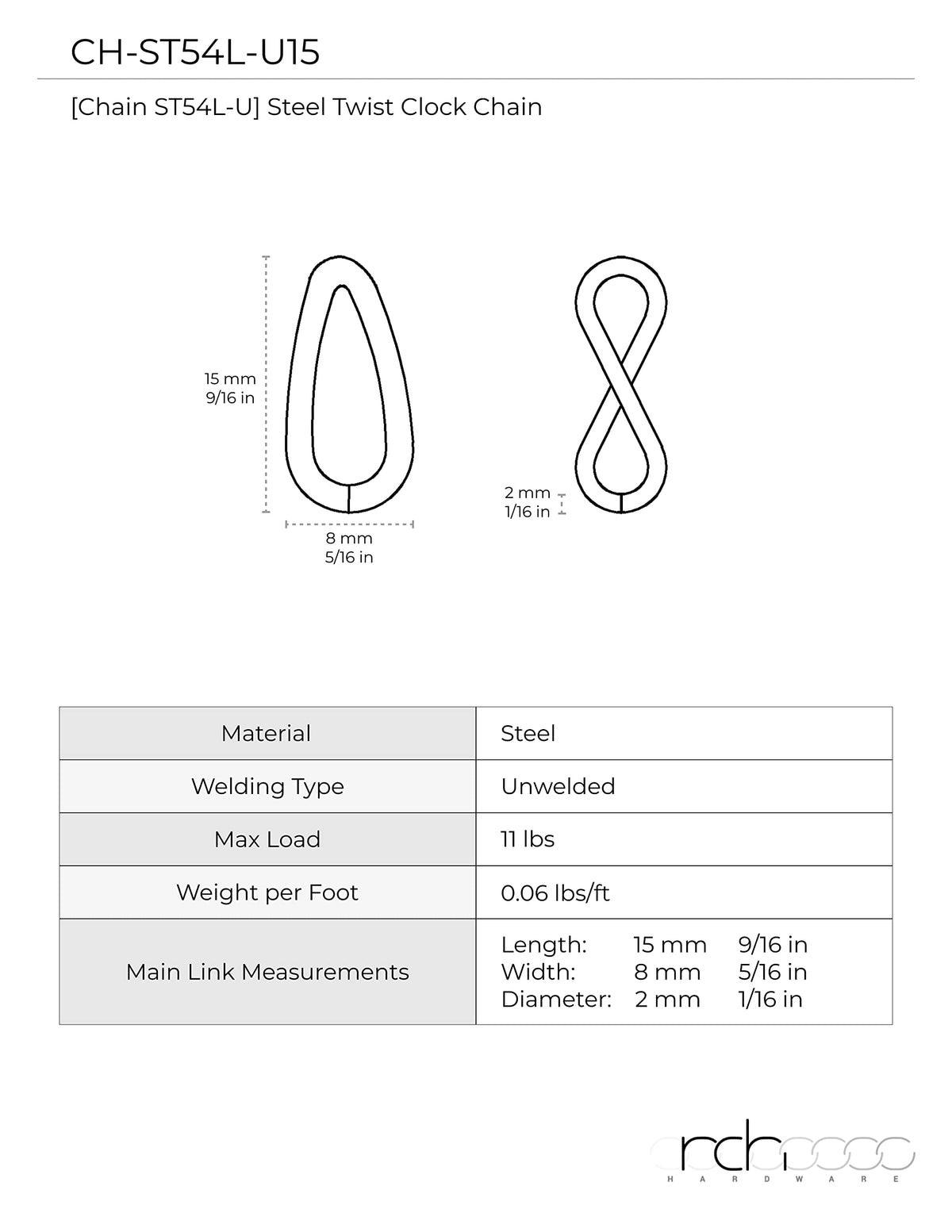 Q: What is the item height of this chain?A: The item height of the RCH Hardware chain is zero point zero eight inches.