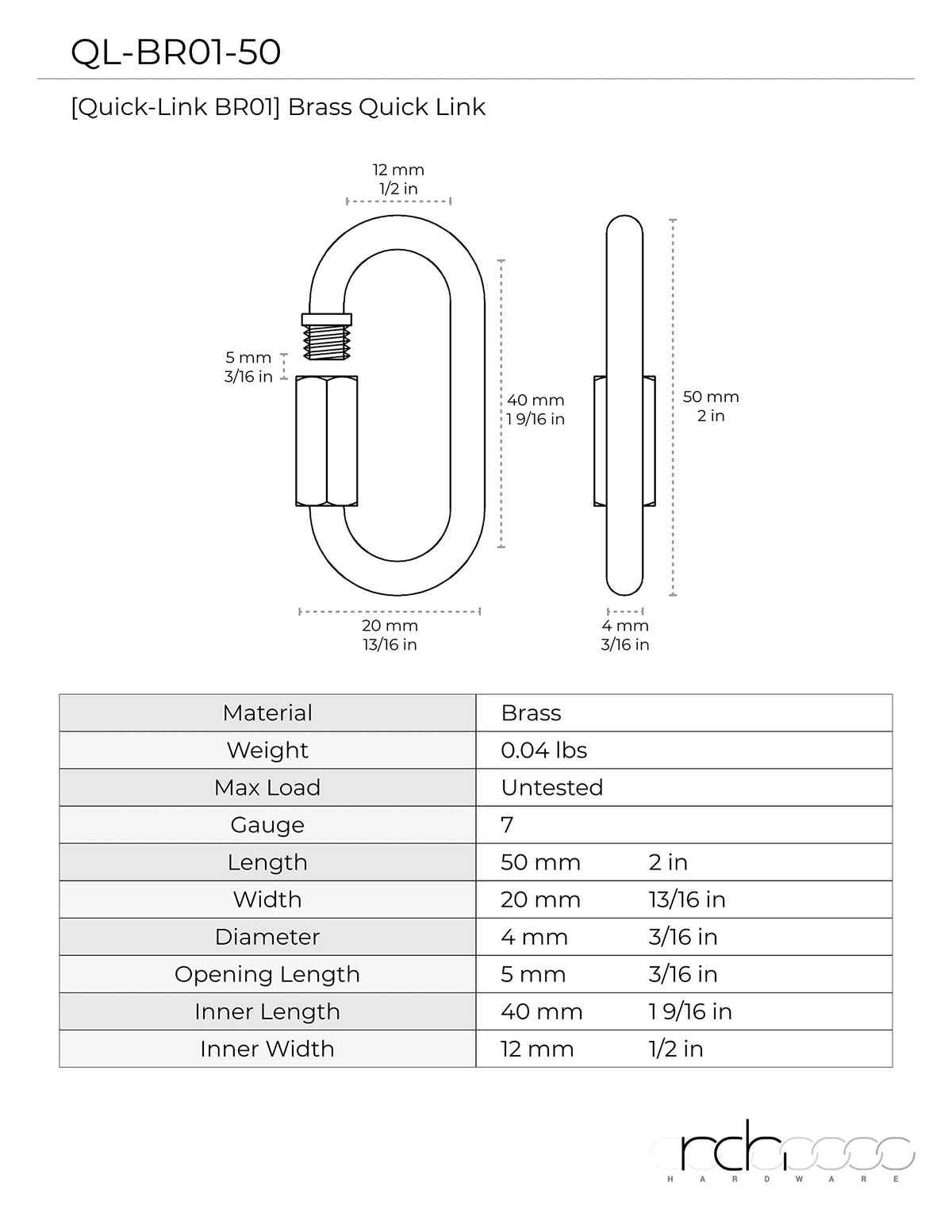 Quick links are some of the easiest ways to reliably link sections of chain to make temporary or permanent connections. Our quick links are made of solid brass and feature a hex nut threaded closure that is easily grasped and unscrewed to open, yet strong and secure when fastened closed. We offer these essential brass connecting links in 6 sizes ranging from 1.38 long to 3.5 long - and once installed, they seamlessly blend in with a variety of standard and decorative lighting chains. Since brass is naturally rust resistant, these connectors are also perfect for a wide variety of outdoor applications like hanging signage, outdoor decorations, plants, flower baskets, and so much more! Our brass quick links are available in most of the same finishes as our brass lighting fixture and hanging chains to simplify achieving a matching, cohesive look.