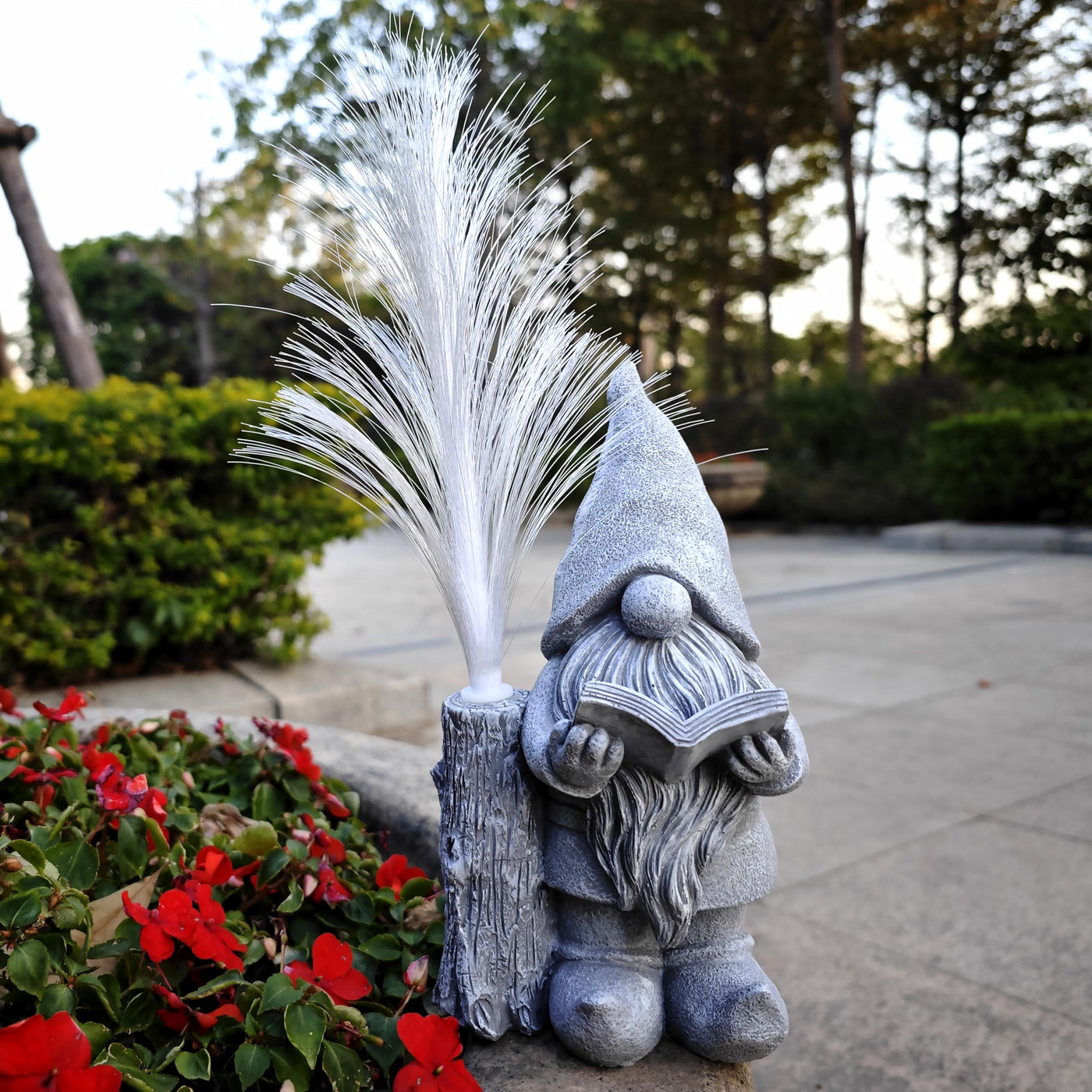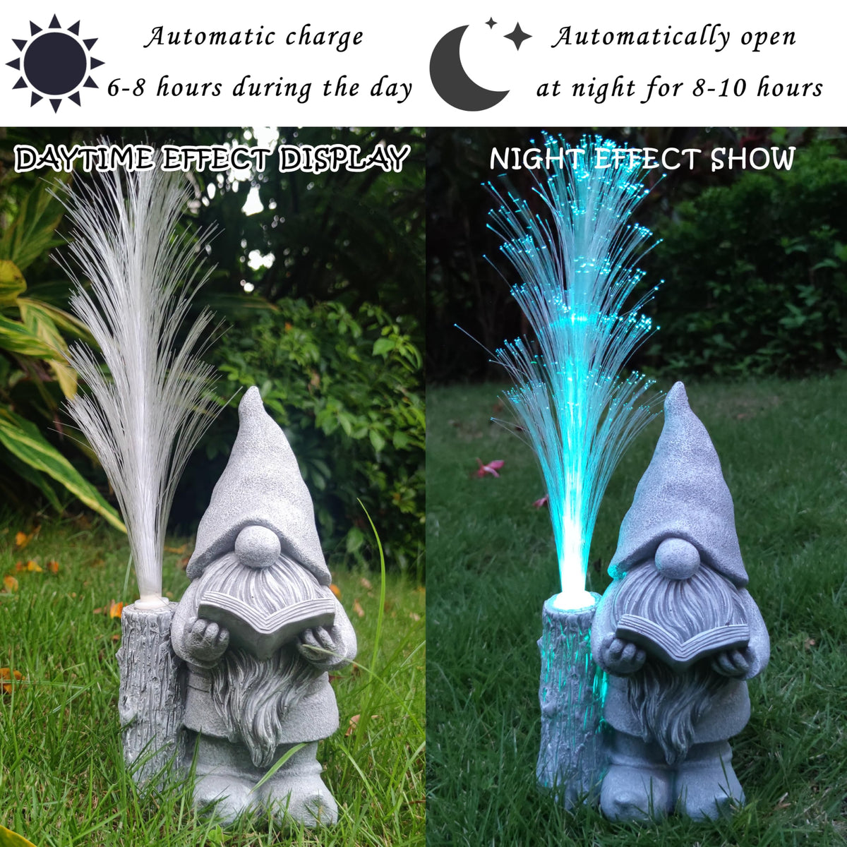 Rctticuu Gnomes Statue Solar Garden Decor,Resin Gnome Statues And Colour Changing Optical Fiber Solar Lights,Outdoor Decoration