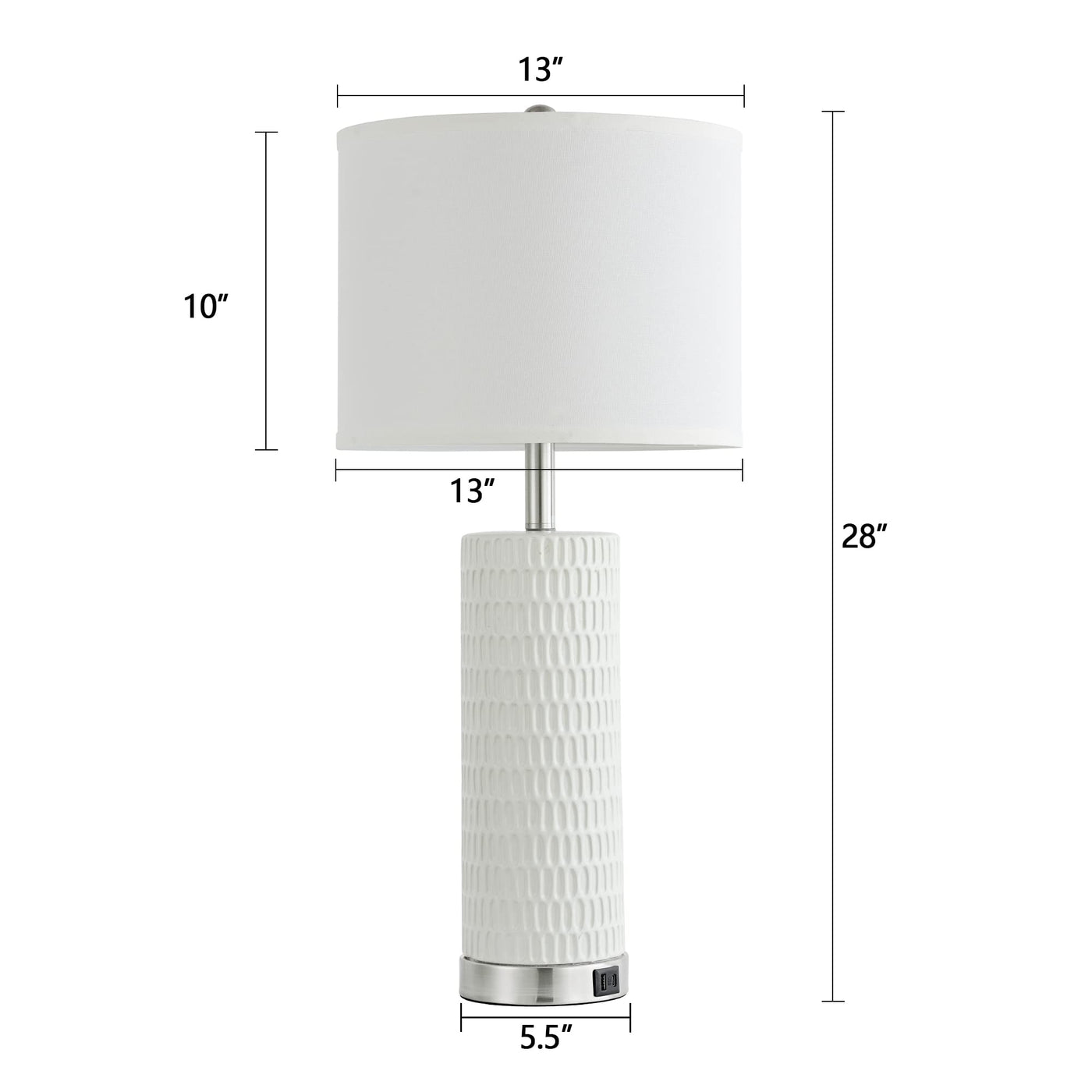 Q: What are the dimensions of the Reaketon Ceramic Table Lamp?A: The Reaketon Ceramic Table Lamp stands at 28 inches high, making it an ideal size for various spaces such as bedrooms, living rooms, or office desks.