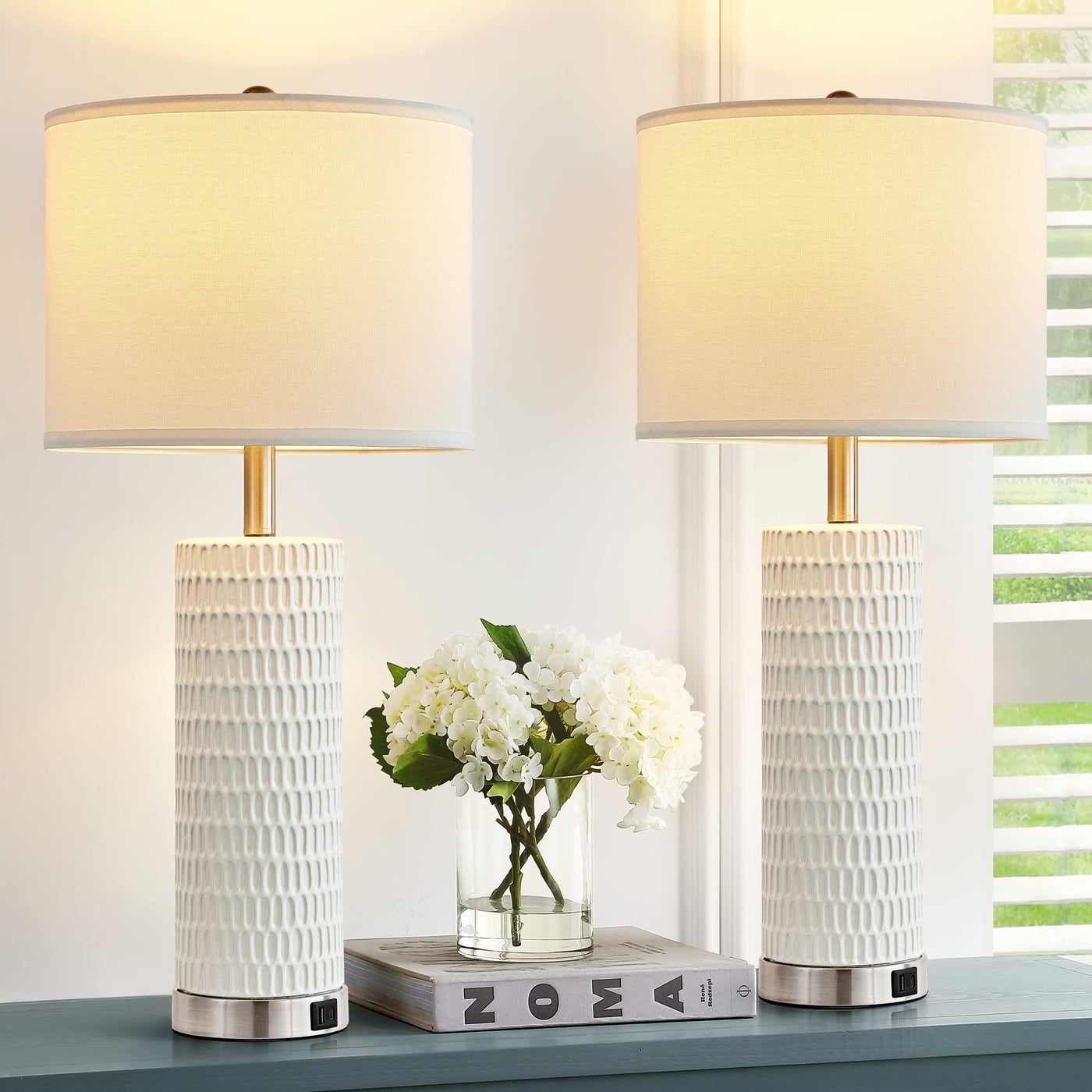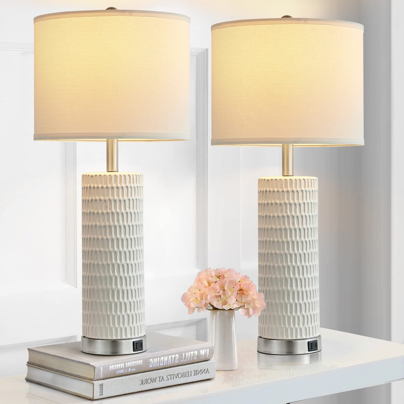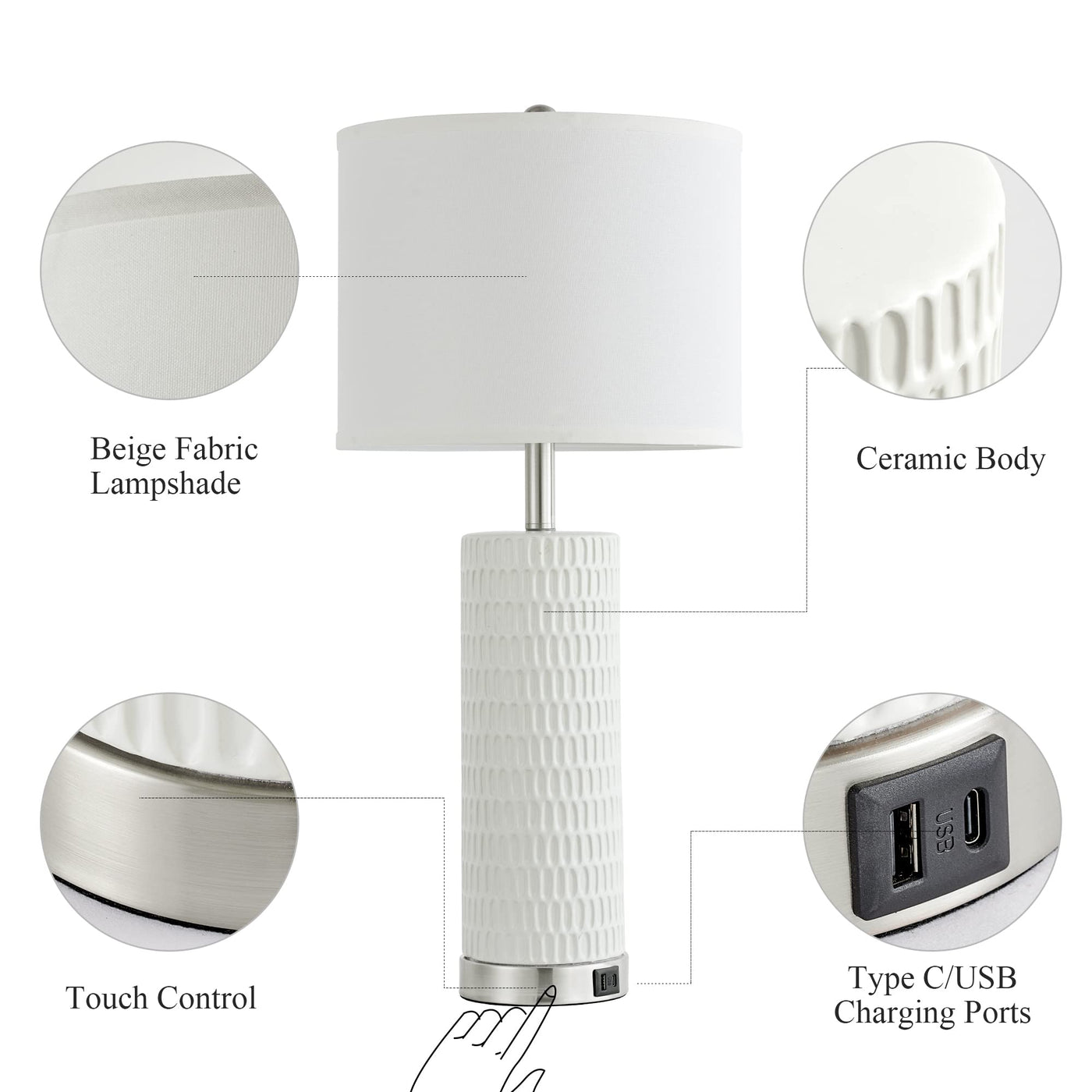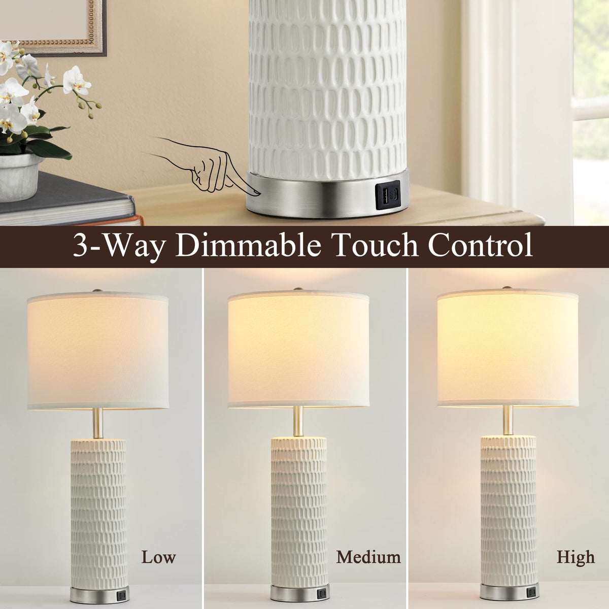 Reaketon 28" Ceramic Table Lamp Set Of 2, 3 Way Dimmable Touch Control Table Lamp With 2 Usb Charging Ports For Bedroom Living Room,Modern Nightstand Lamp End Table Lamps(2 Bulbs Included)