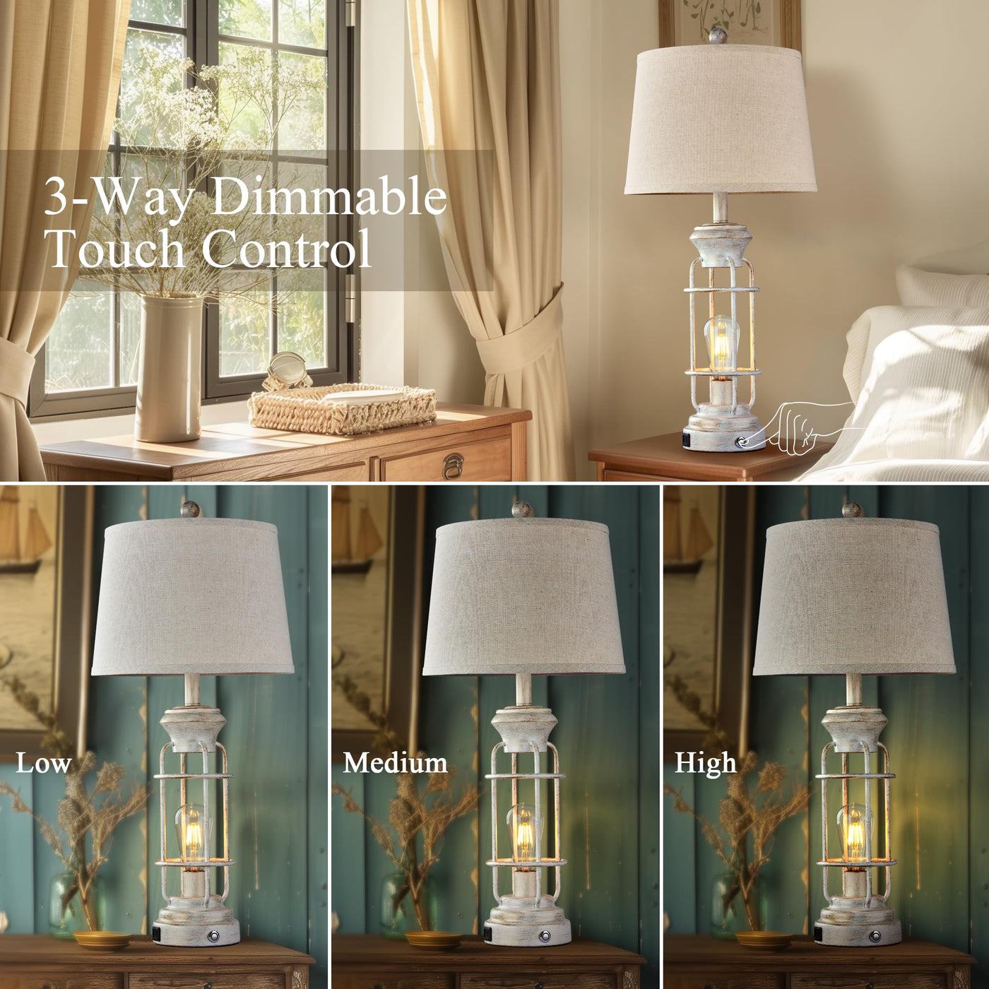 Q: What are the dimensions of the Reaketon Farmhouse Table Lamps?A: The Reaketon Farmhouse Table Lamps stand at a height of 29.3 inches, making them a perfect choice for adding a touch of elegance and retro charm to your living room or bedroom.
