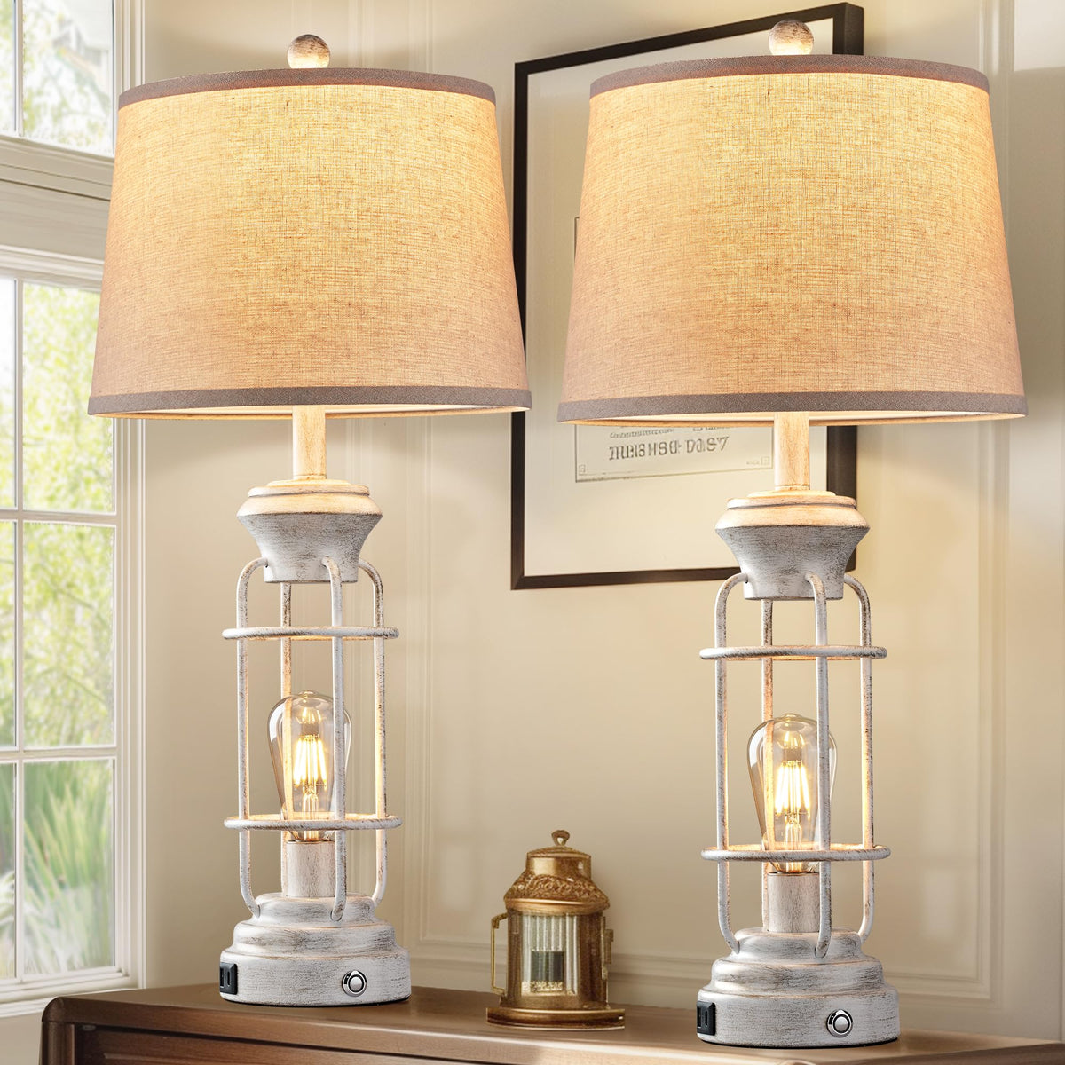 Reaketon 29.3'' Farmhouse Table Lamp Set Of 2 With Usb Charging Ports, Tall Table Lamp For Living Room,3-Way Dimmable Lamps For
