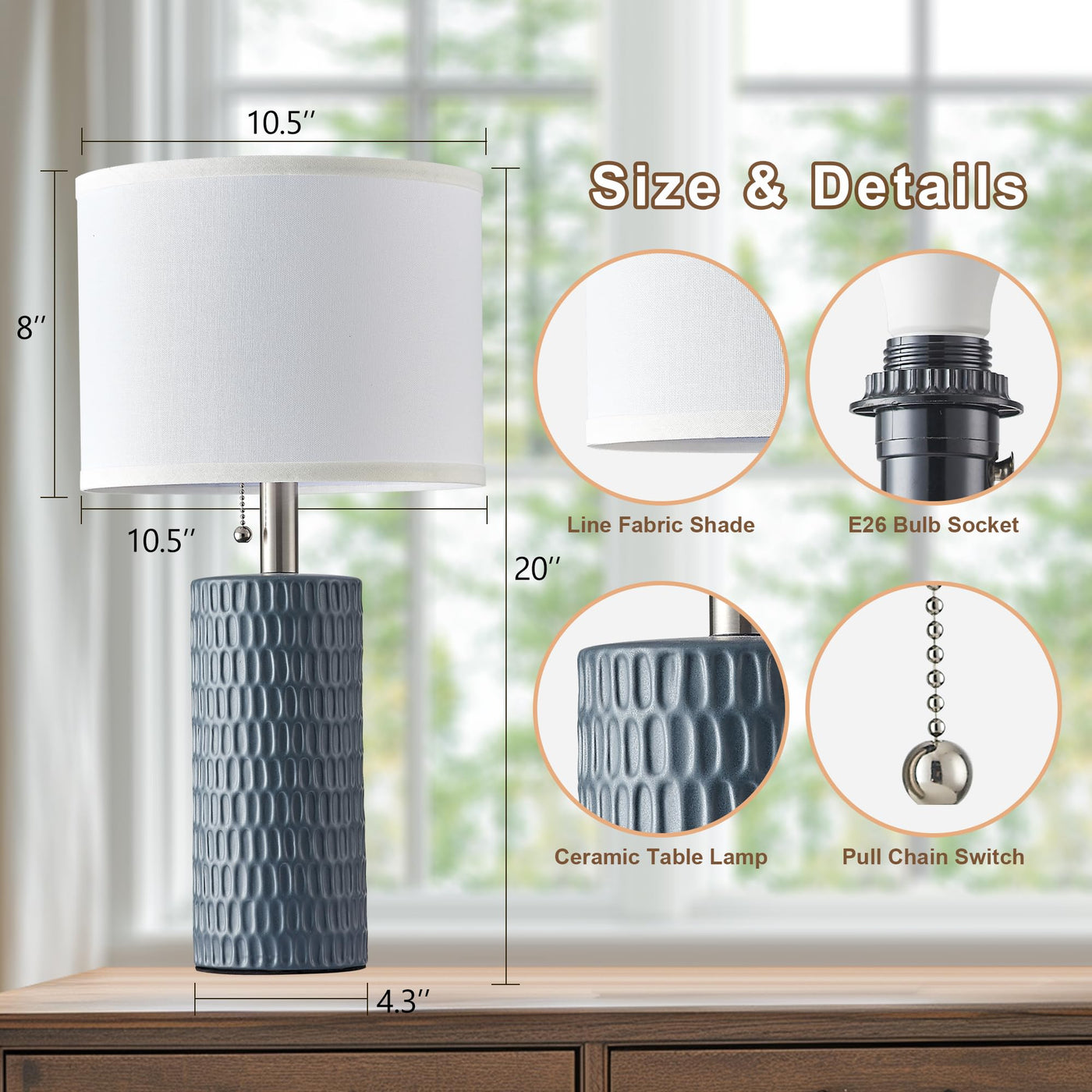 Q: What is the height and size of the Reaketon table lamps?A: The Reaketon table lamps stand at a height of 20 inches with a base diameter of 4.3 inches, making them ideal for nightstands and various home settings.