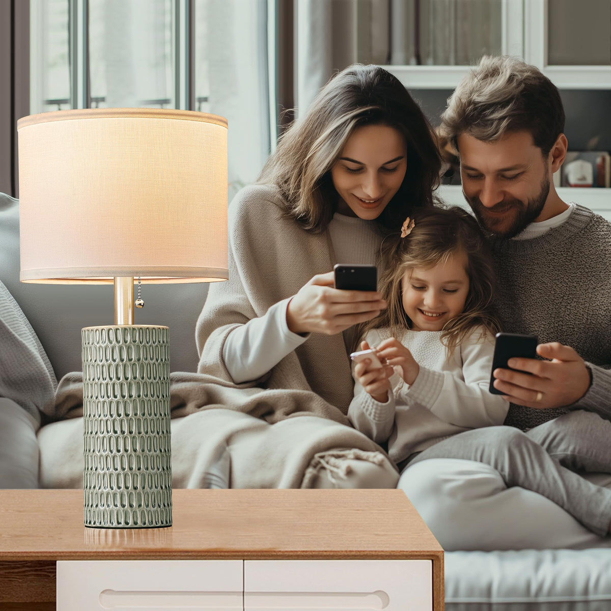 Reaketon Ceramic Table Lamp Set Of 2, 20'' Modern Bedside Lamps For Living Room, Bedroom & Home Office - Pull Chain Nightstand L