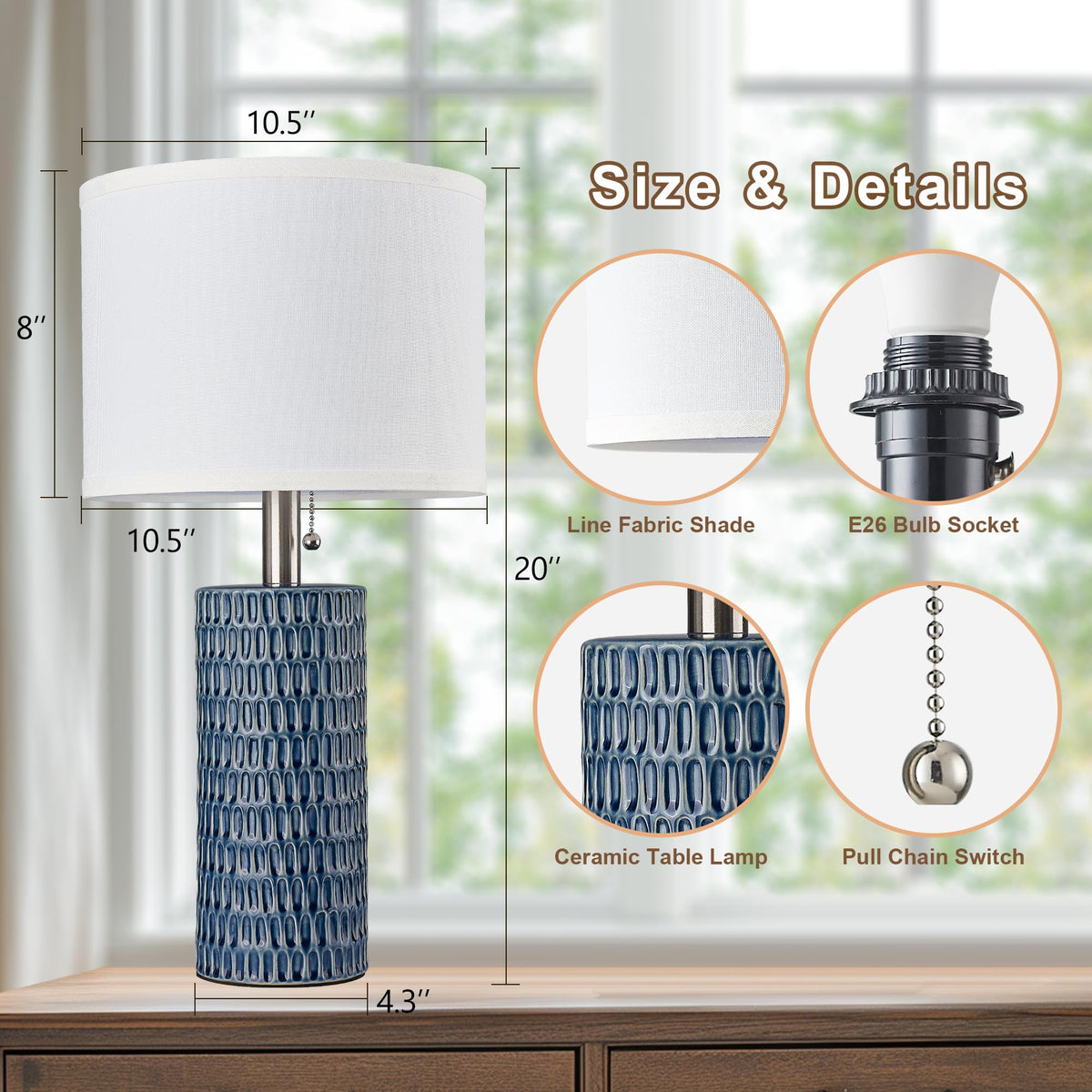 Reaketon Table Lamp Set Of 2,20'' Ceramic Table Lamp Bedside Lamps Nightstand Lamp Modern Table Lamp For Living Room,Bedroom & H