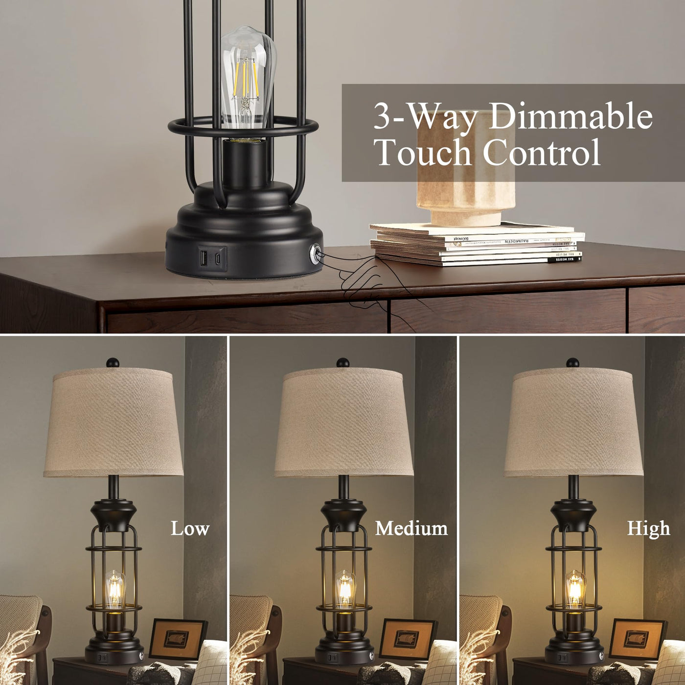 Q: How does the touch control feature work on these lamps?A: The touch control feature allows you to adjust the brightness of the lamps from low to high by simply tapping the base of the metal button.