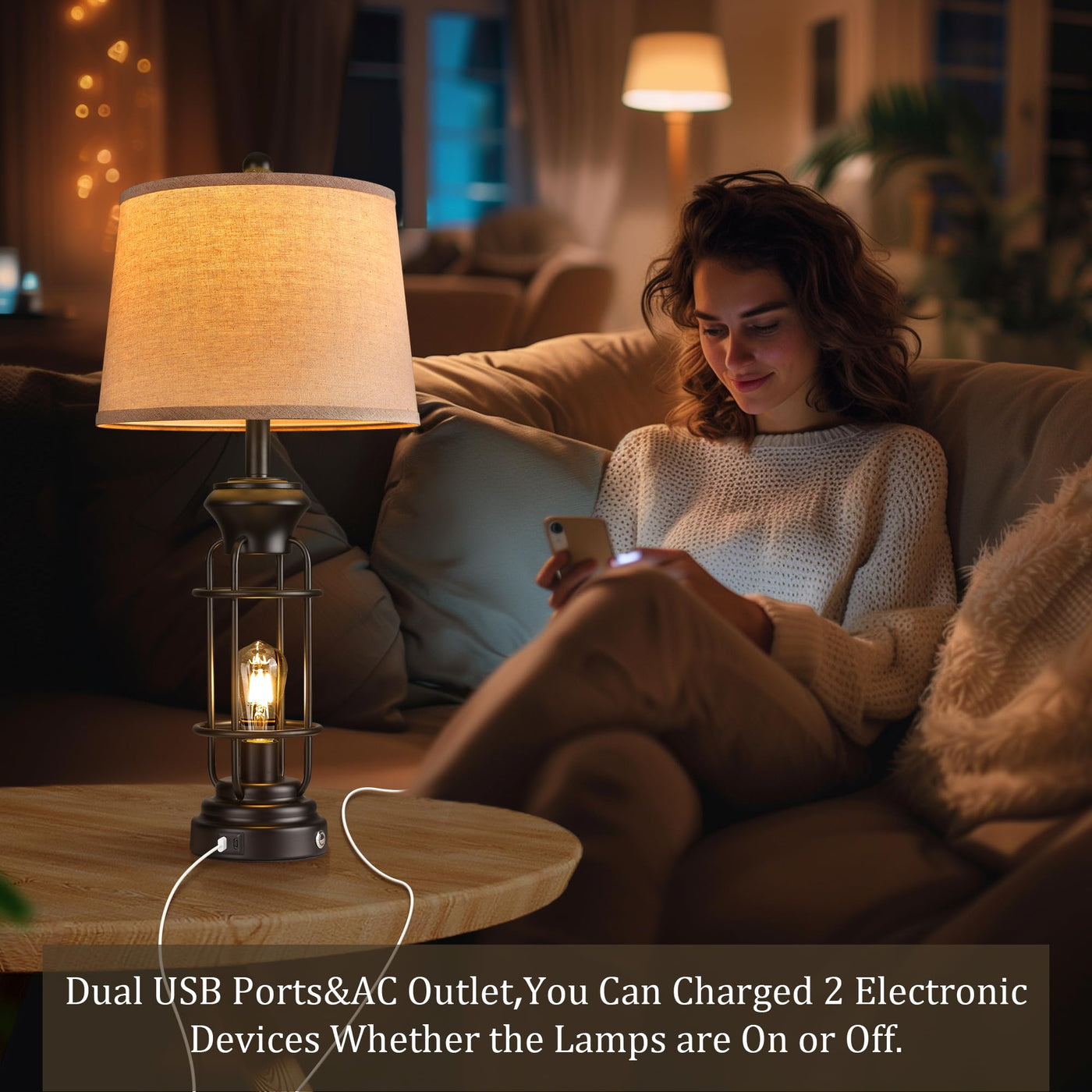 Q: What type of charging ports does this lamp have?A: The Reaketon Table Lamp is equipped with dual practical charging ports, allowing you to charge various electronic devices conveniently.
