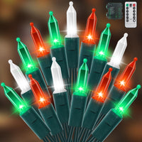 Recesky 100 Led Christmas String Lights With Remote - 33Ft Mini Bulb Battery String Lights - Fairy Lighting Decor For Indoor Decor Greenery Wreath Lawn Bedroom Christmas Decorations - Red White Green