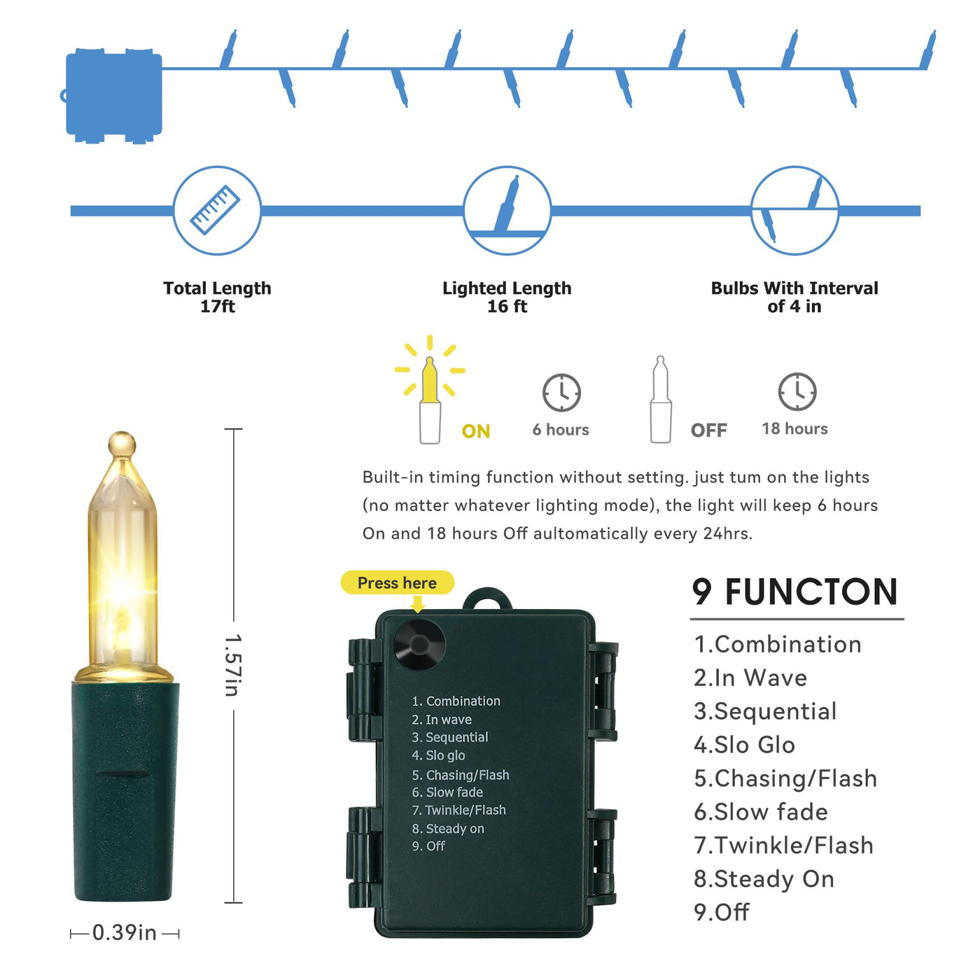 Multi Modes Multi Happy ? There are 8 different light modes including Wave, Sequential, Chasing, Fade, Twinkle, Steady On, etc. Allow you to enjoy different light show, not a single day is boring day with this wonderful fairy lights.