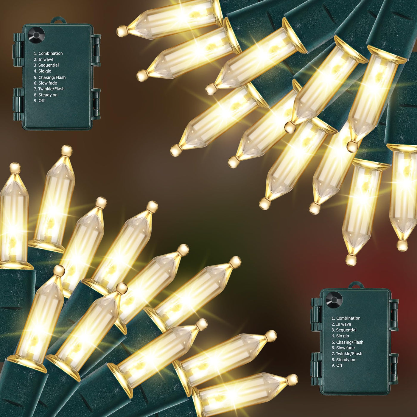 Recesky 2 Pack Christmas String Lights With Built-In Timer - Total 100 Led 36Ft Fairy Battery String Lights - Mini Lighting For Garden Festival Living Room Xmas Tree Christmas Decorations - Warm White