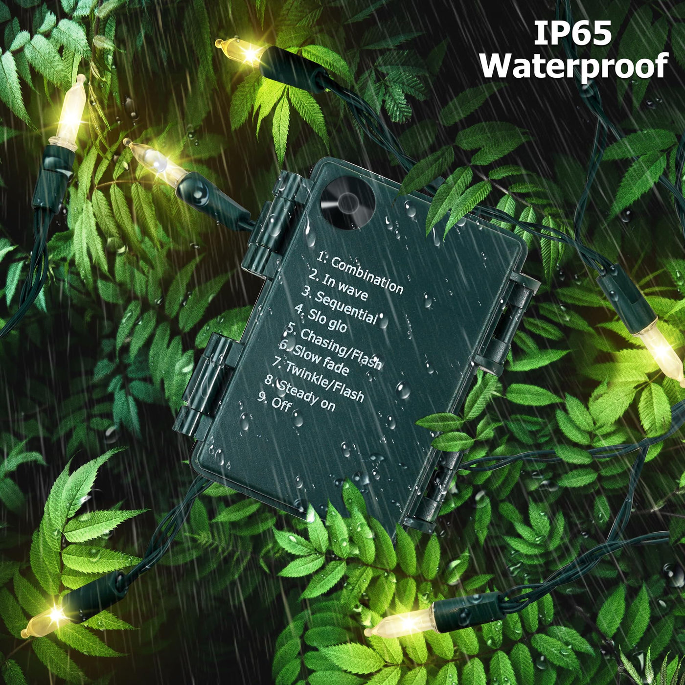 Q: What are the main features of the RECESKY Christmas String Lights?A: The RECESKY Christmas String Lights feature a total of 100 LED lights on a 36ft length, a built-in smart timer with 8 different light modes, and are powered by 3 AA batteries. They are also waterproof with an IP65 rating, making them suitable for both indoor and outdoor use.