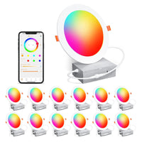 Recessed Lighting 6 Inch Rgbcw Color Changing Smart Recessed Ceiling Lights 16W 1350Lm Led Downlights Dimmable By Alexa & App, 2