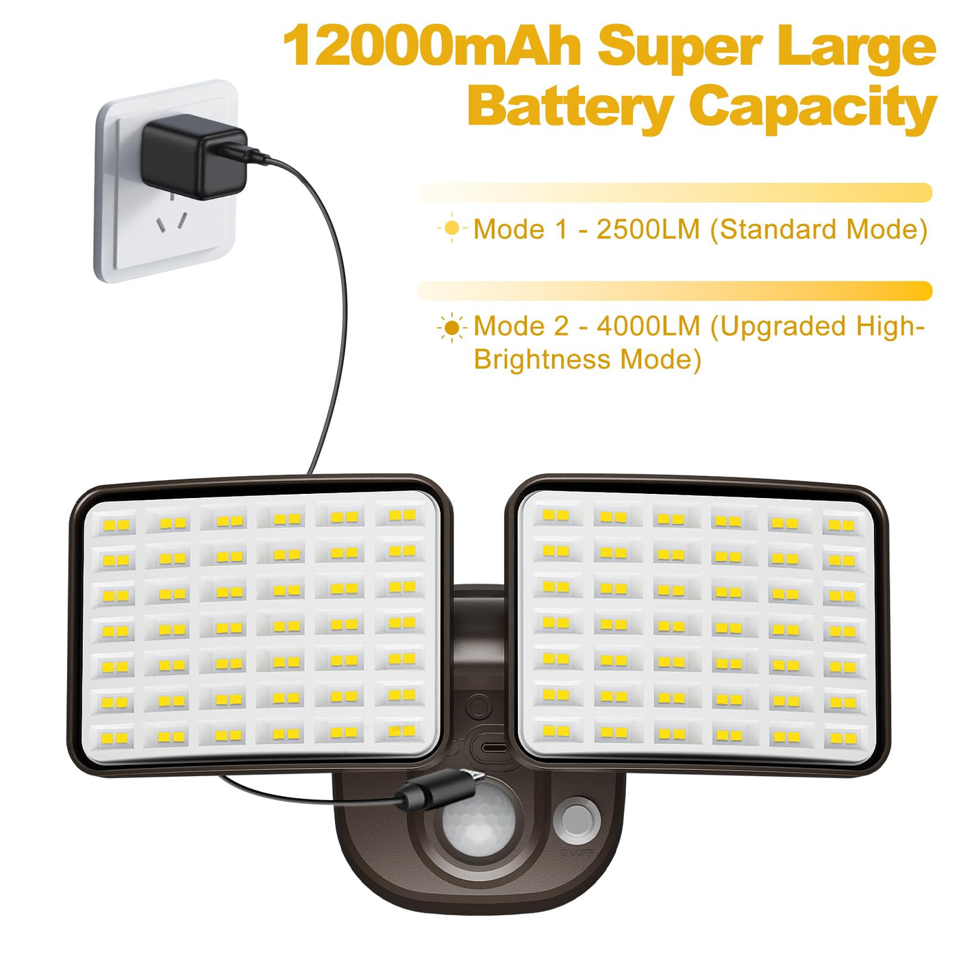 Rechargeable Battery-Powered Motion Light (1-3 Months Endurance), 2500Lm Standard & 4000Lm High-Brightness Dual Modes, Usb Charg