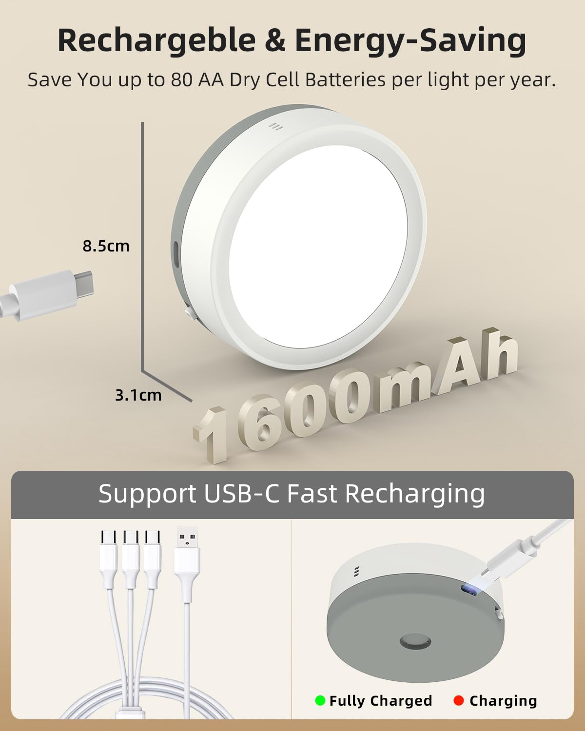 Q: Are these lights safe to use in homes with children?A: Yes, the rechargeable puck lights are designed with safety in mind. They are free from harmful chemicals and are safe for use in homes, including children's rooms.