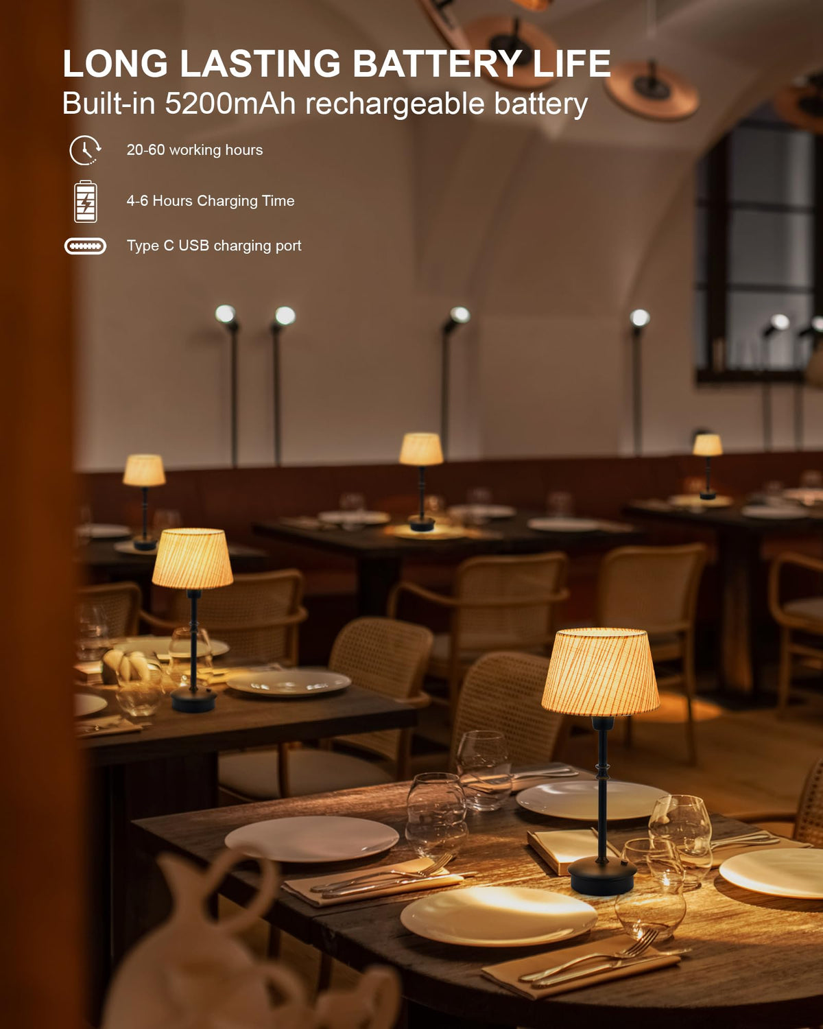 Experience The Perfect Blend Of Convenience And Style With Our Small Cordless Table Lamp With Dimmer. Featuring A Powerful 5200Mah Rechargeable Battery, This Lamp Offers Up To 10 Hours Of Cordless Illumination, Allowing You To Effortlessly Place It Anywhere-From Your Bedside Nightstand To Outdoor Patios, Dining Tables, Restaurants, Bars, And Kitchens. The Intuitive Touch Control Enables You To Adjust Between Three Brightness Levels, Providing Customized Lighting For Reading, Dining, Or Creating A Warm, Inviting Atmosphere. Emitting A Soft Warm White Light, It Enhances Any Space With Its Cozy Glow. The Compact 13-Inch Height And Unique Lampshade Design Make It A Stylish Addition That Complements Both Modern And Classic D Cor. Built With Durability In Mind, This Lamp Is Perfect For Everyday Use And Versatile Enough For Various Settings. Whether You'Re Enhancing Your Home Ambiance Or Seeking The Ideal Lighting Solution For A Commercial Space, This Rechargeable, Battery-Operated Lamp Delivers Exceptional Performance. It'S Not Just A Lamp; It'S A Statement Piece That Adds Warmth And Elegance To Any Environment.