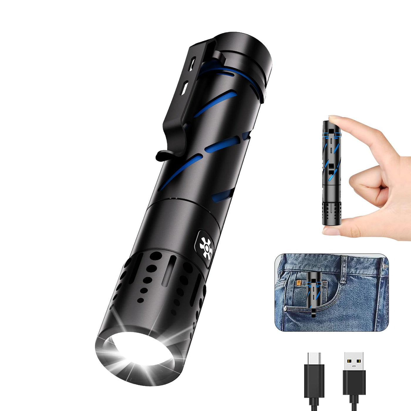 Rechargeable Flashlight with Long Beam and Belt Clip Small Flashlight with 5 Modes Zoomable Waterproof Adjustable Brightness Hig