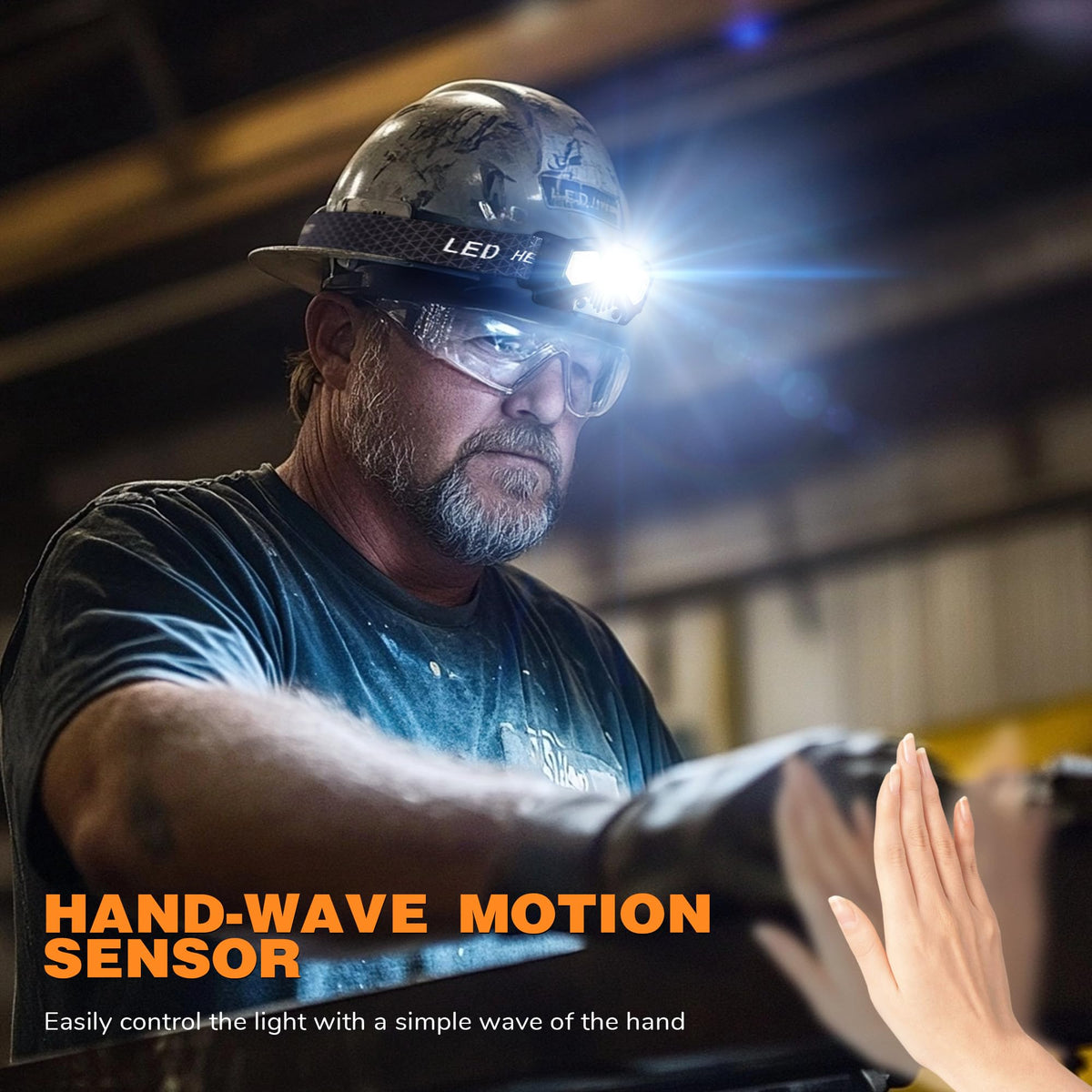 Rechargeable Headlamp with Red/Green/White 14 Modes, 1400 Lumens LED Head lamp Ultra-Bright Headlamp Rechargeable, Motion Sensor