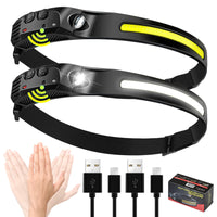 Rechargeable Headlamps 2Pcs,2000Mah Battery Powered Hard Hat Lights,5 Mode Bright Headlamp For Adults, Motion Sensor Lead Lights