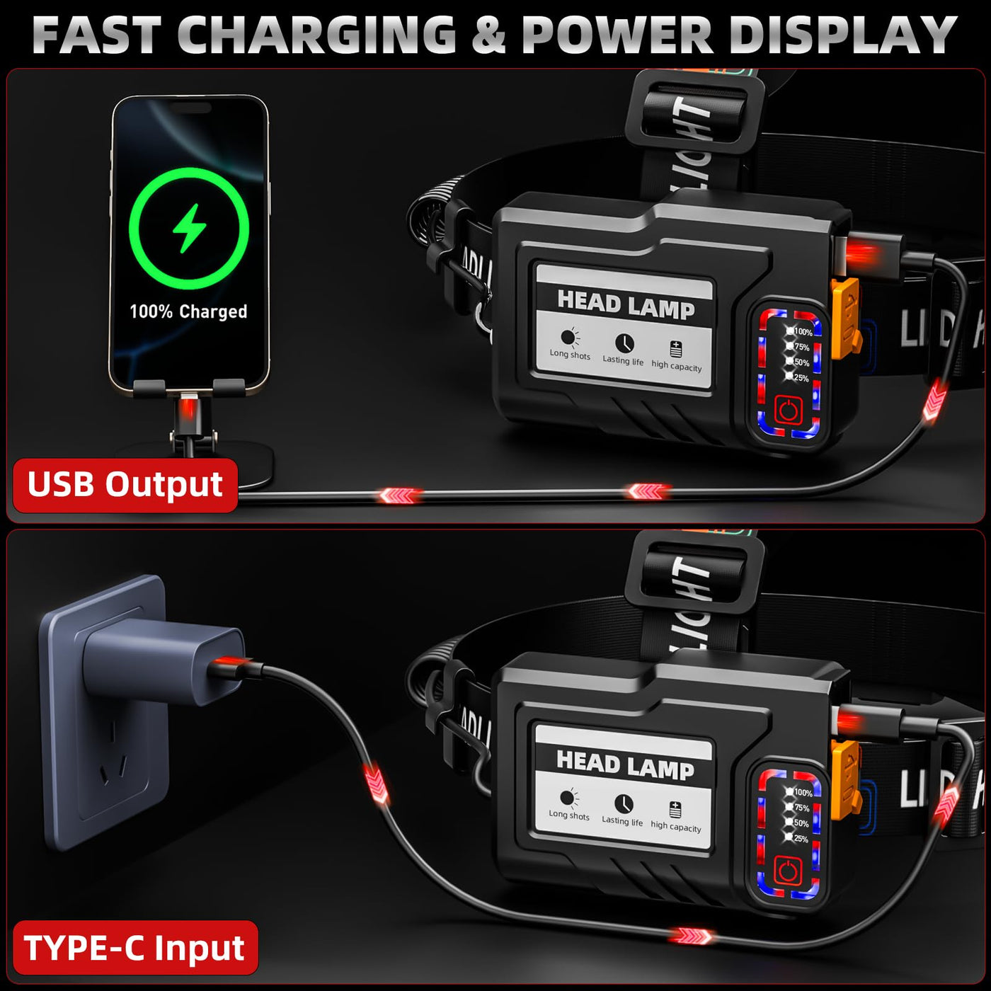 Experience unparalleled illumination with our Rechargeable Headlamp 1900 High Lumens. This super bright LED head lamp with motion sensing technology ensures you're never left in the dark. With 12 modes and an IPX7 waterproof rating, it's perfect for outdoor adventures like camping, cycling, and running. The 125 adjustable and zoomable design lets you customize the beam to your needs, while the rechargeable battery ensures long-lasting performance. Lightweight and comfortable, this headlamp is a must-have for any outdoor enthusiast.