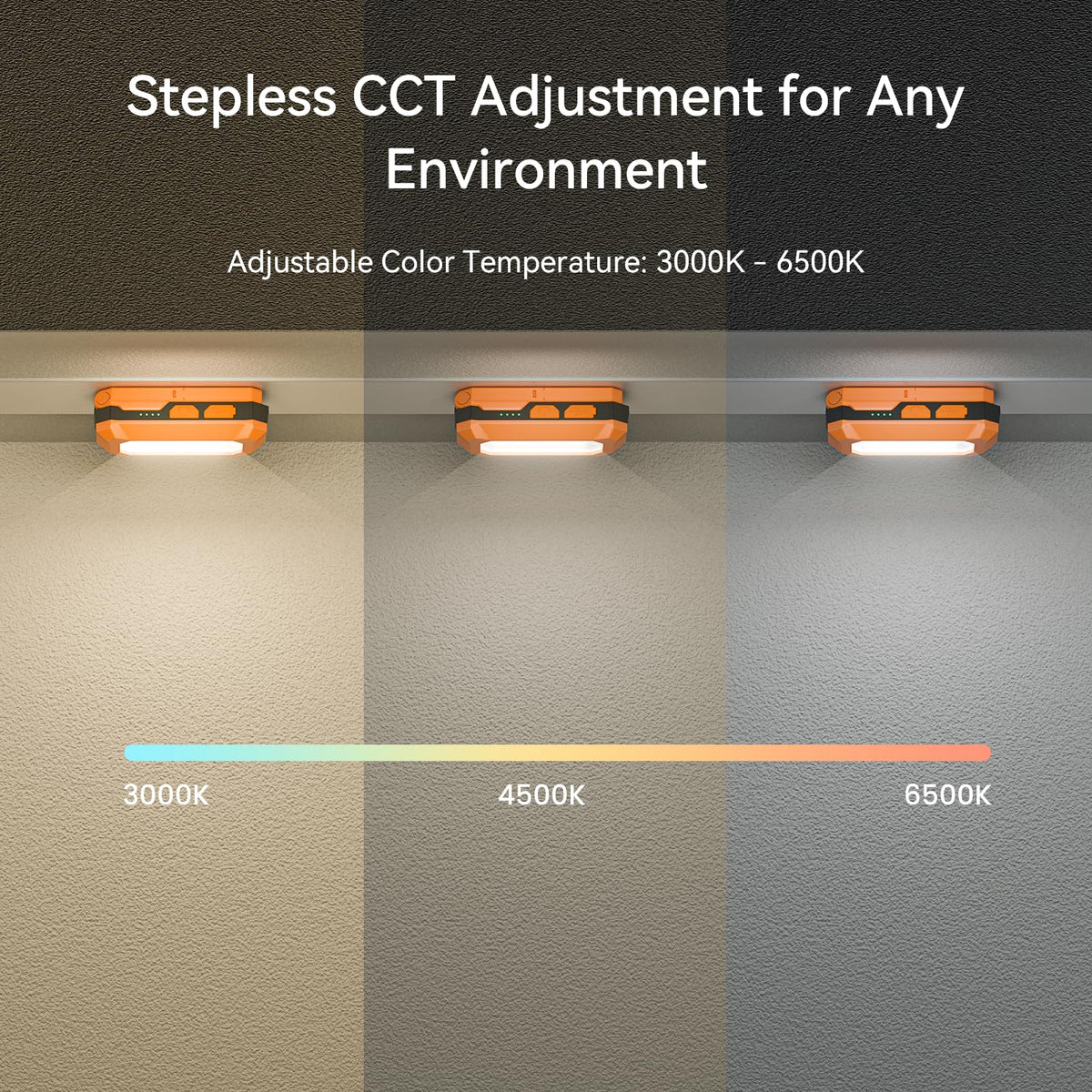 Rechargeable LED Work Light Cordless, 3000K-6500K CCT 500 Lumen, 40Hour Max, Adjustable 180 Stand IP54 Waterproof Compact Portab