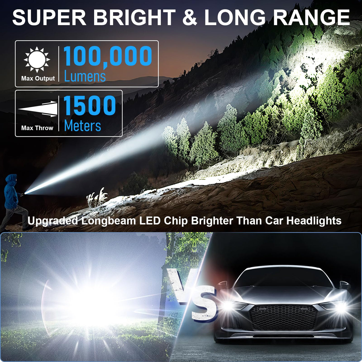 Rechargeable Magnetic Flashlights 100,000 High Lumens, Super Bright Led Powerful Flashlight 8 Modes With Cob Work Light, Waterpr