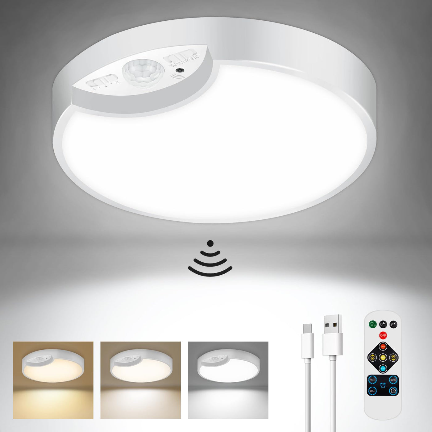 Rechargeable Motion Sensor Led Ceiling Light With Remote &Nbsp; This Battery Powered Ceiling Light Can Be Perfectly Applied With A Variety Of Contemporary And Modern Home Improvement.&Nbsp; Auto Mode1:&Nbsp;As Long As The Motion Activated Ceiling Light Fixtures Detect Motion During The Day, They Will Auto Turn On But Auto Turn Off After 20S No Movement Detected, This Mode Is Suitable For Closet And Laundry. &Nbsp; &Nbsp; Auto Mode2:&Nbsp;Our Battery Operated Motion Lights For Pantry Will Auto Turn On When There Is Movement Triggered At Night. After 20S &Nbsp;No Movement Detected They Will Auto Turn Off.&Nbsp;This Mode Is Suitable For Stairs &Nbsp;Or Hallway. &Nbsp; Manual Mode:&Nbsp;If You Want To Use The Motion Sensor&Nbsp;Ceiling &Nbsp;Lights&Nbsp;Indoor For&Nbsp;Living Room Or Bedroom, You Can Choose The Manual Mode, Which Can Be Turned On Or Off Manually.