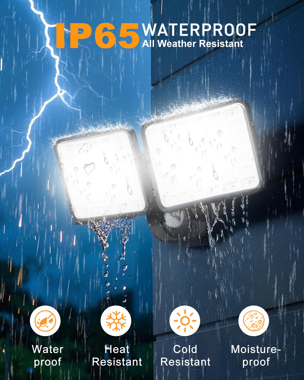 Q: What are the lighting modes available for this motion sensor light?A: This motion sensor light features two modes: a standard mode that provides 2500LM and a high-brightness mode that reaches 4000LM.