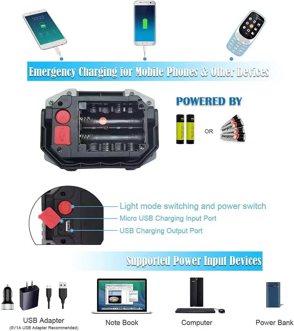 ?Compared with other similar work light products,Fosfis work light has the advantages of brighter,safer and electricity saving.? ?Work Light Built-in Power Bank Function ? Super Bright & 30W/1500 Lumens ?Wide Range of Applications ?Portable & Rechargeable ?Light Mode Adjustable Work Lighs ?Waterproof & Dustproof Work Lights