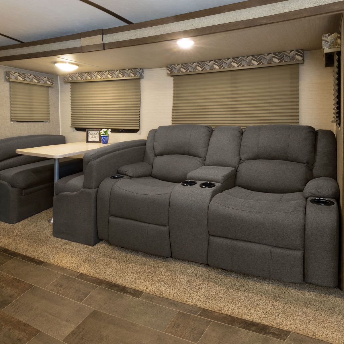 Q: What material are the RecPro RV Blinds made of?A: The RecPro RV Blinds are made from Bellagio fabric, which is durable, lightweight, and provides excellent privacy without being see-through.