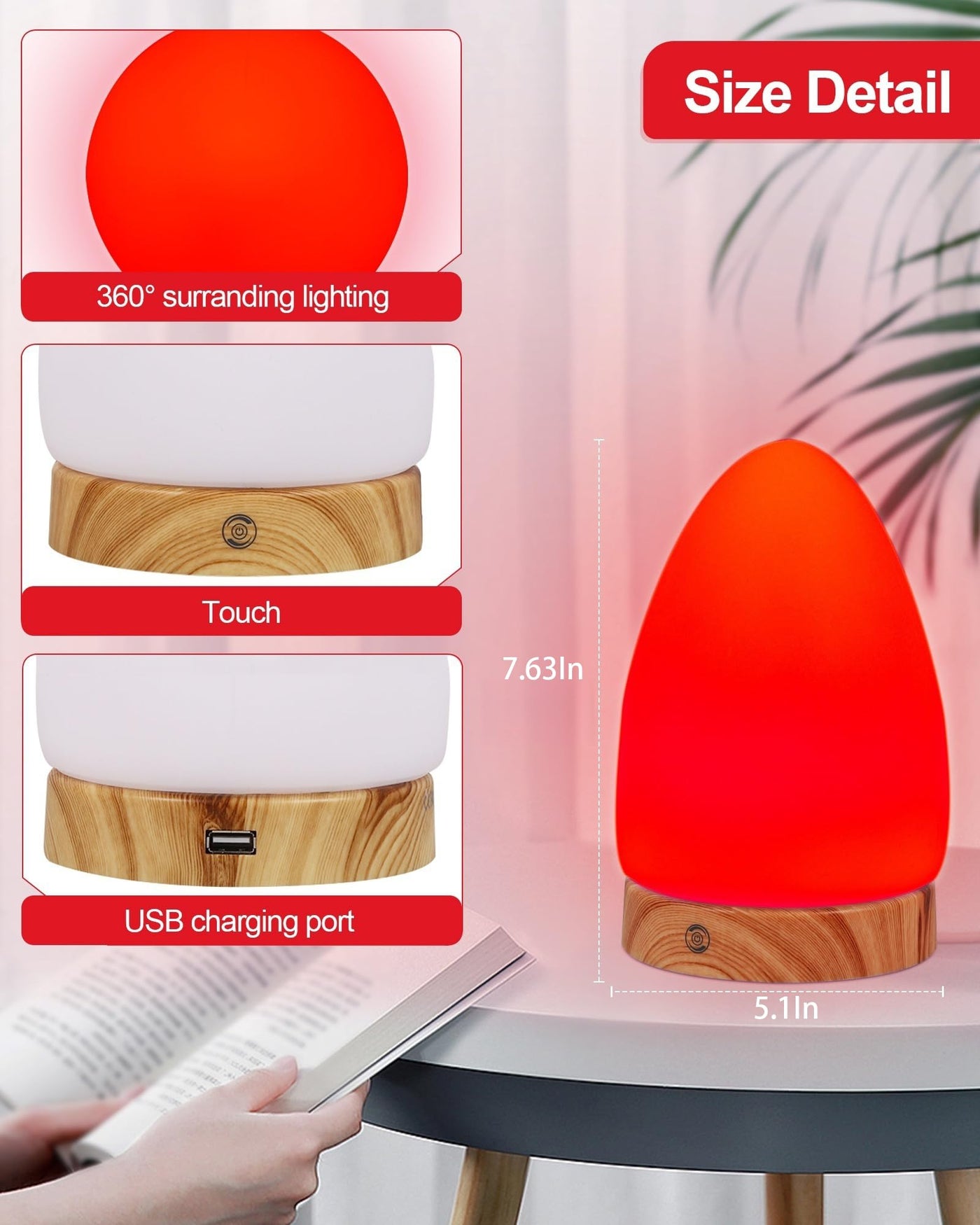 Aoife Red Light Night Lamp - USB Charging, Remote Control, 670nm Wavelength, Elegant Design, Red-EggGlow