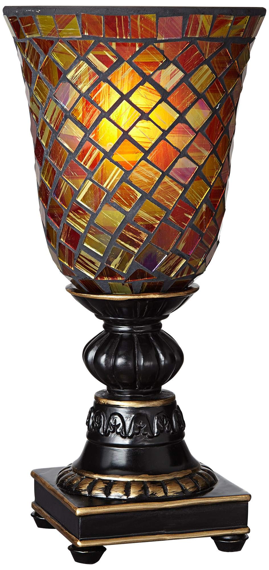 Regency Hill 12" Dark Bronze Accent Table Lamp With Amber Mosaic Glass Shade For Bedroom Or Office