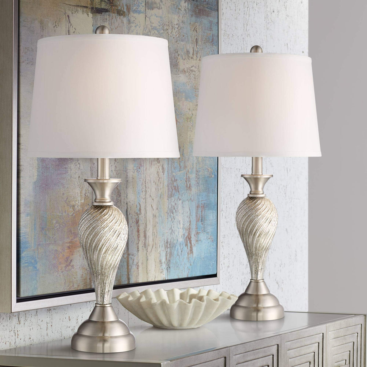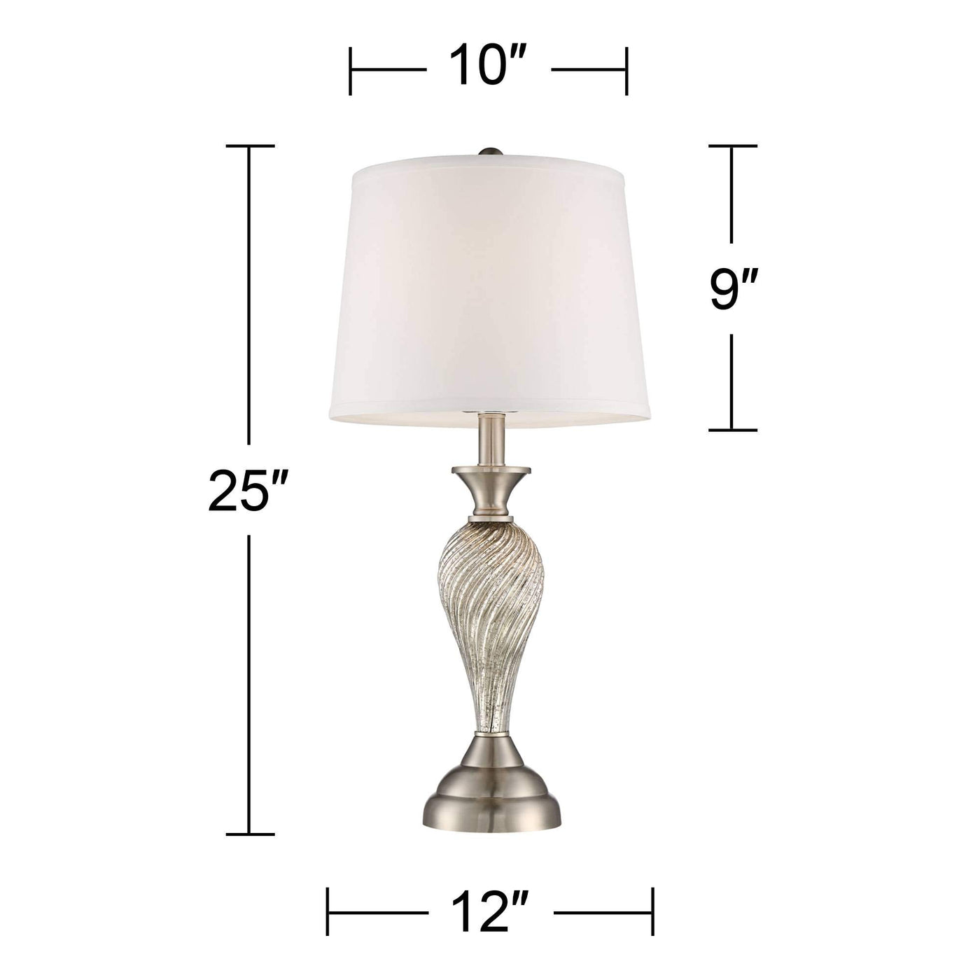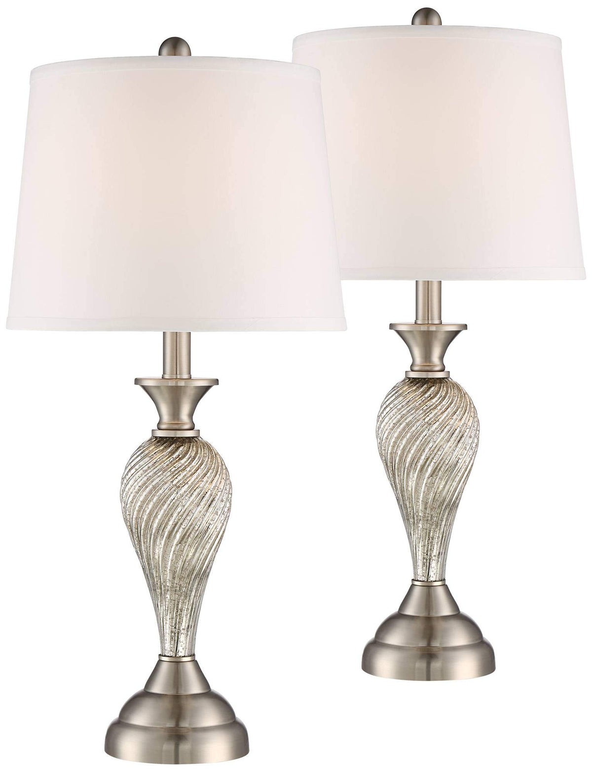 Regency Hill 25" Silver Mercury Glass Table Lamps Set Of 2 With White Shades For Living Room