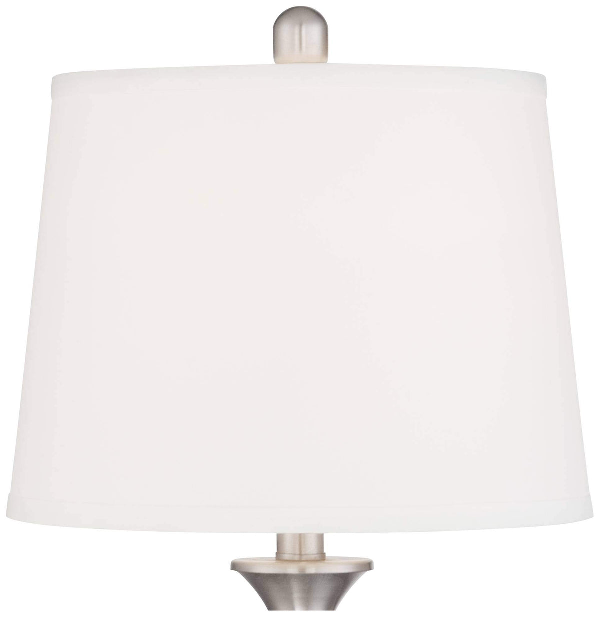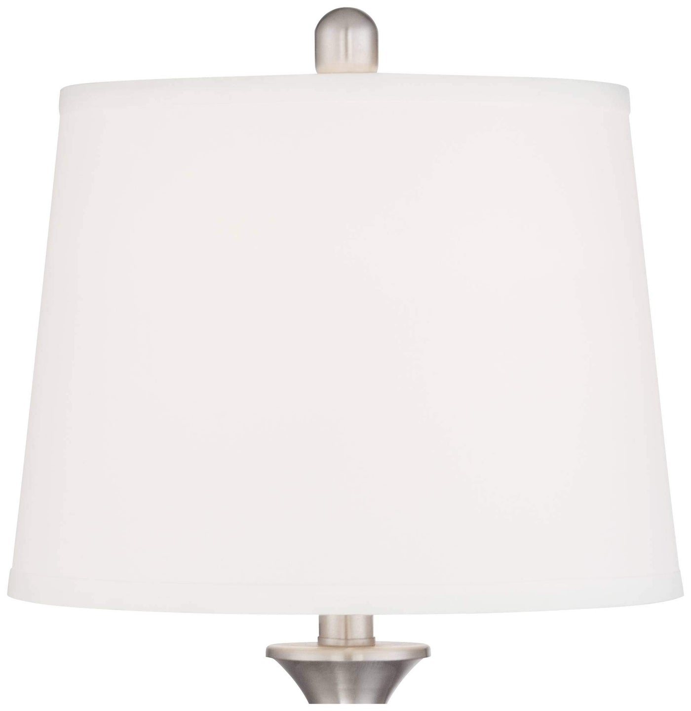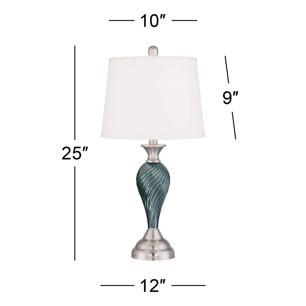 Q: What are the dimensions of the Regency Hill Arden Table Lamps?A: Each lamp in the set measures 25 inches high overall, with shades that are 10 inches across the top, 12 inches across the bottom, and 9 inches high. This size makes them suitable for various settings like nightstands and end tables.