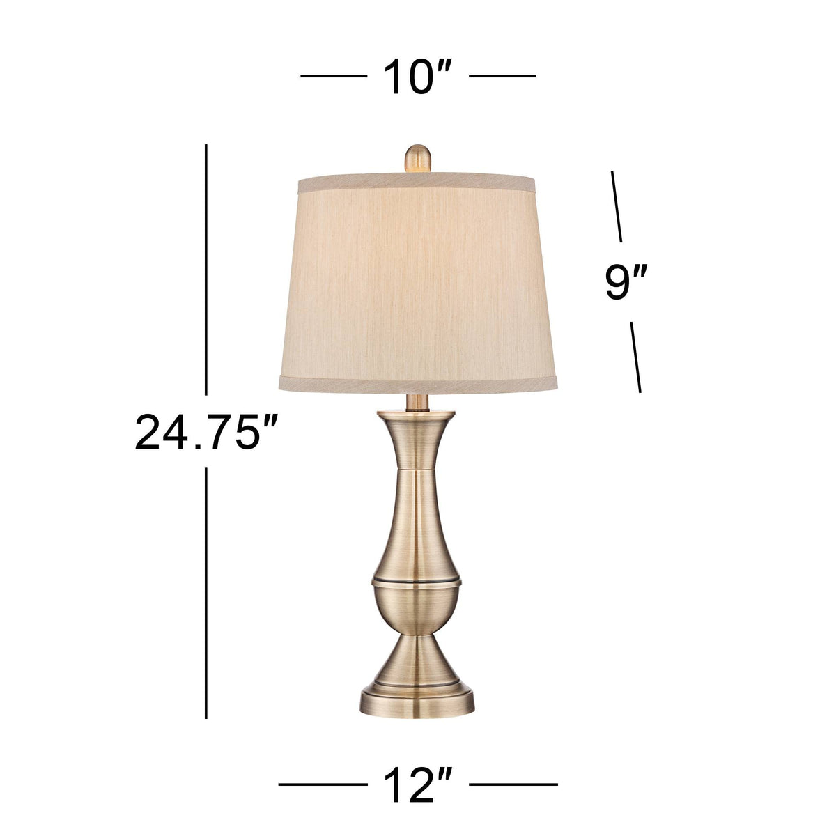 Regency Hill Becky Traditional Table Lamps 24.75'' High Set Of 2 Antique Brass Gold Metal Beige Tapered Drum Shade Decor For Liv