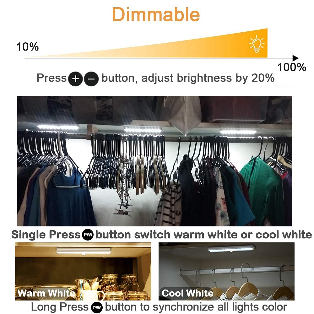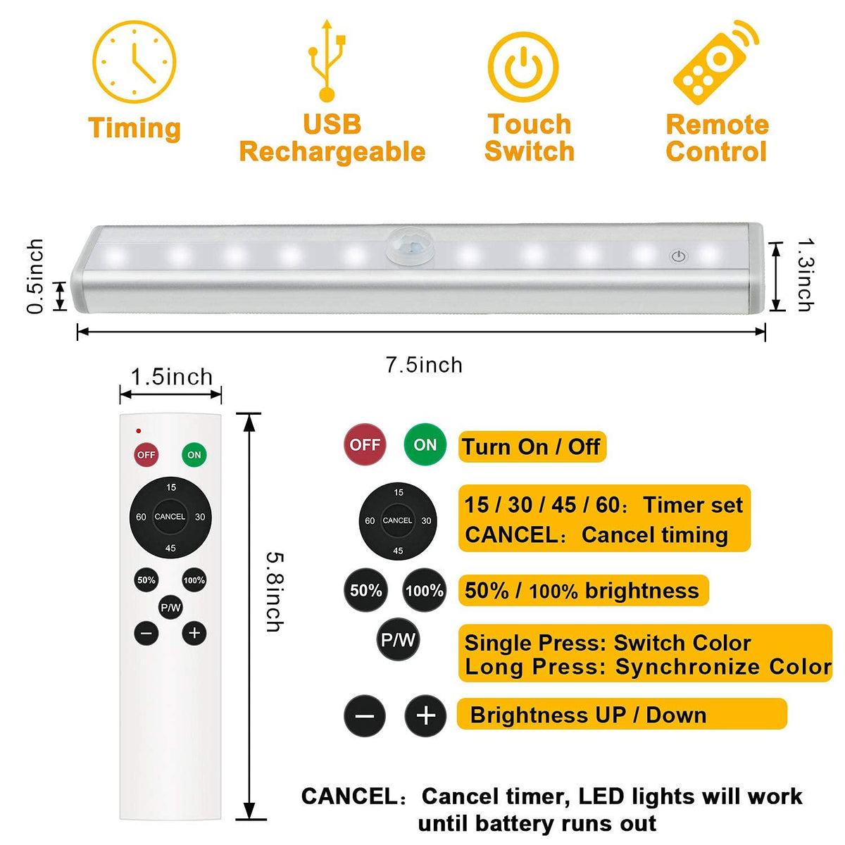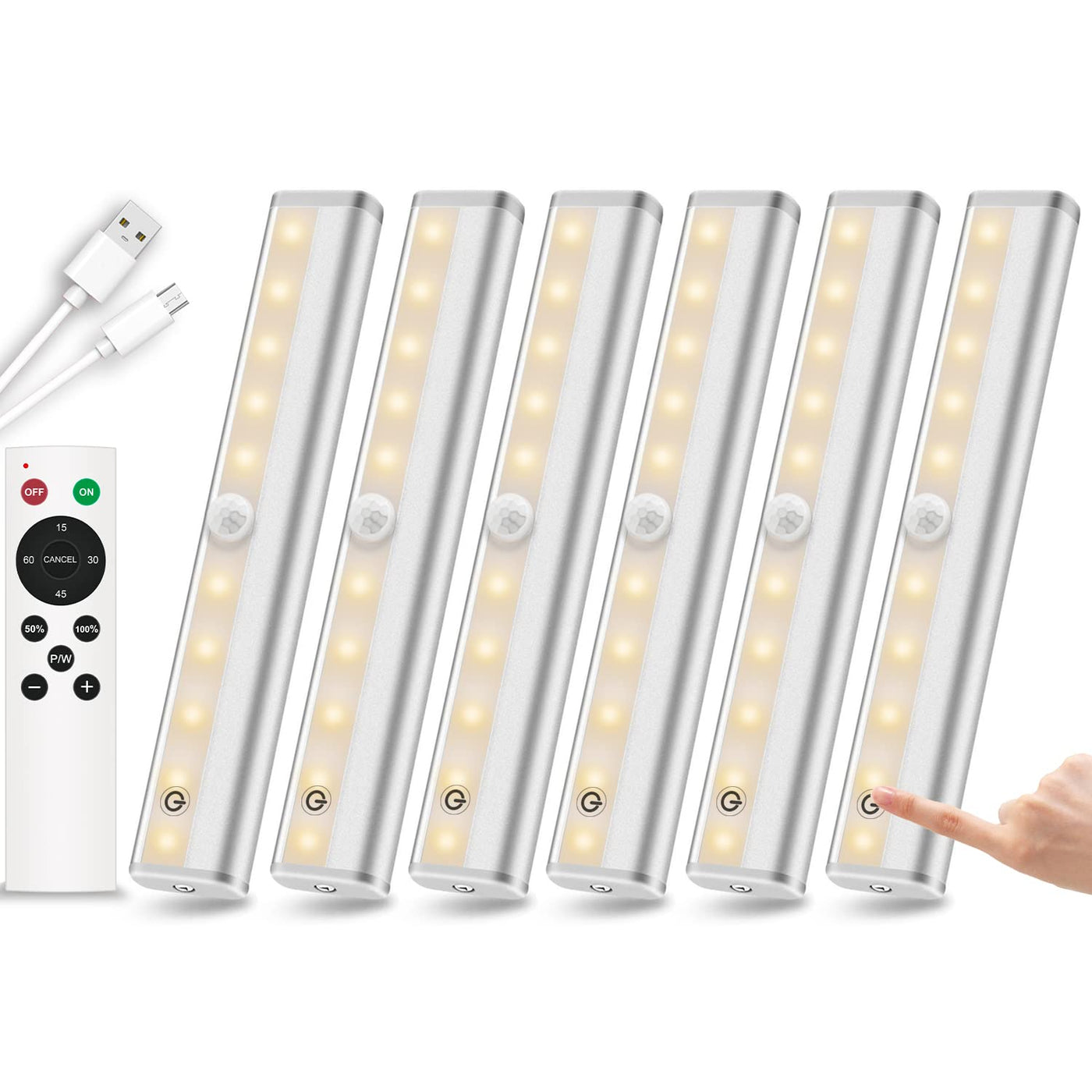 Remote Control Under Cabinet Lighting Wireless 6 Pack, 20-Led Dimmable Closet Lights Rechargeable Under Counter Light, Stick On Touch Night Light Strip Bar For Kitchen Stairway Bedroom, 3 Colors