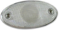 Recessed mount incandescent courtesy light has a smooth clear polycarbonate lens that has a prizmatic design molded into the inside surface to distribute light. It has no trim ring so it blends with any color fiberglass or vinyl. This courtesy light was used on thousands of boats and Rvs for many years. Comes fully assembled, with bulb, mounting screws and gasket included. Dimensions - 4'' W x 2''T x .5'' D. Requires 1.5'' diameter hole, 1.5'' deep. .35 amps. White bulb, #168, included. If your boat has courtesy lights that look like this (with no trim ring), this is your light!
