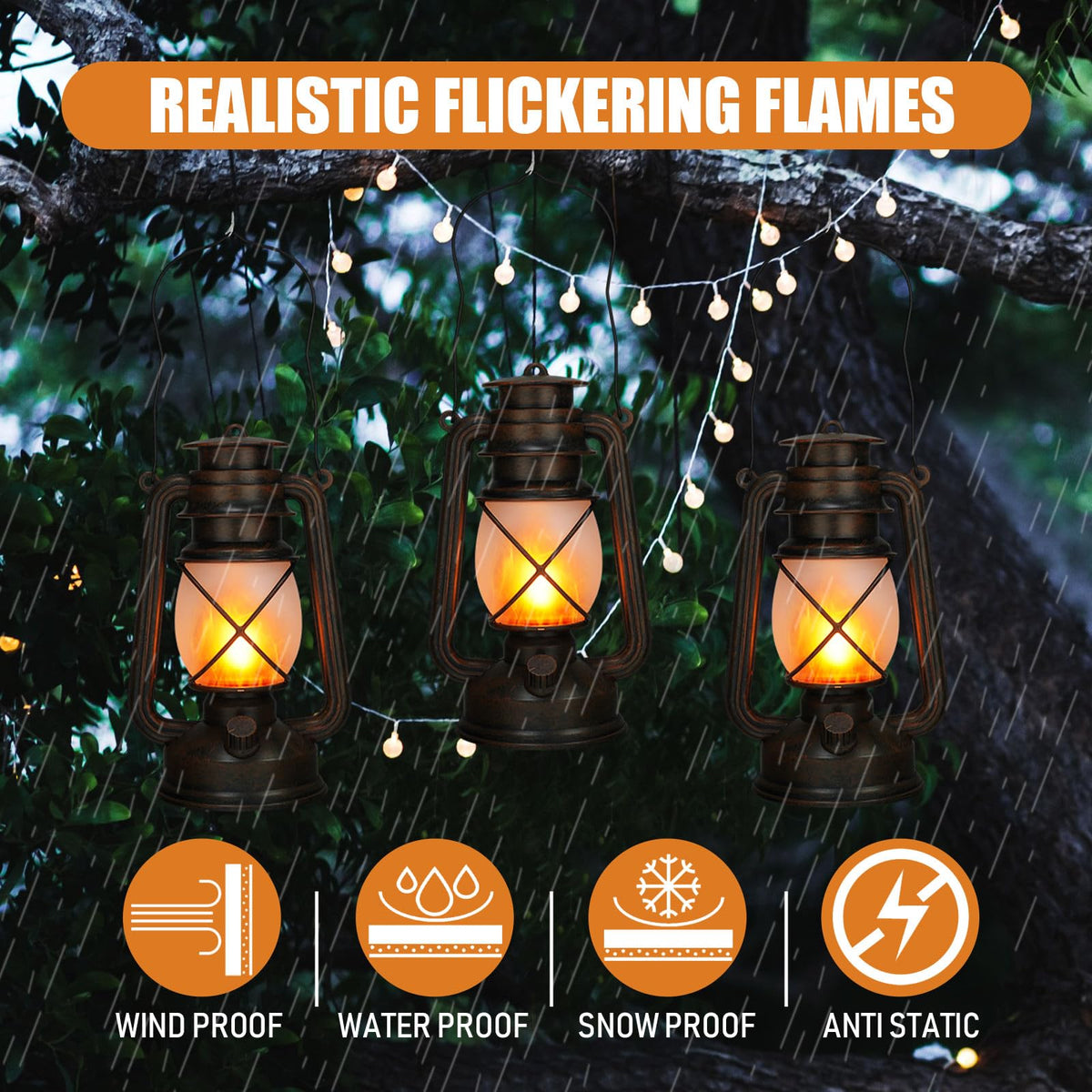 Retisee Vintage Led Lantern Battery Powered Camping Lamp Indoor Outdoor Hanging Lantern Flickering Fire Lamps With Remote Contro