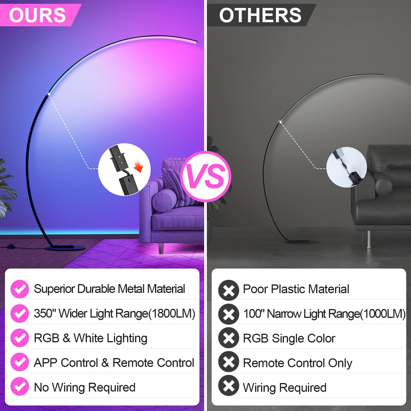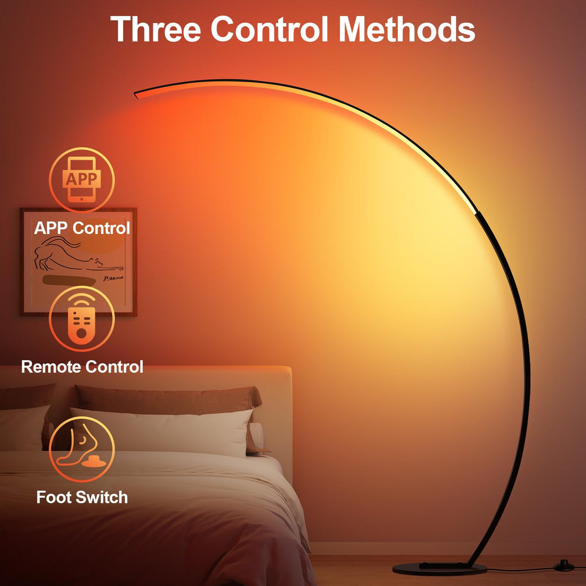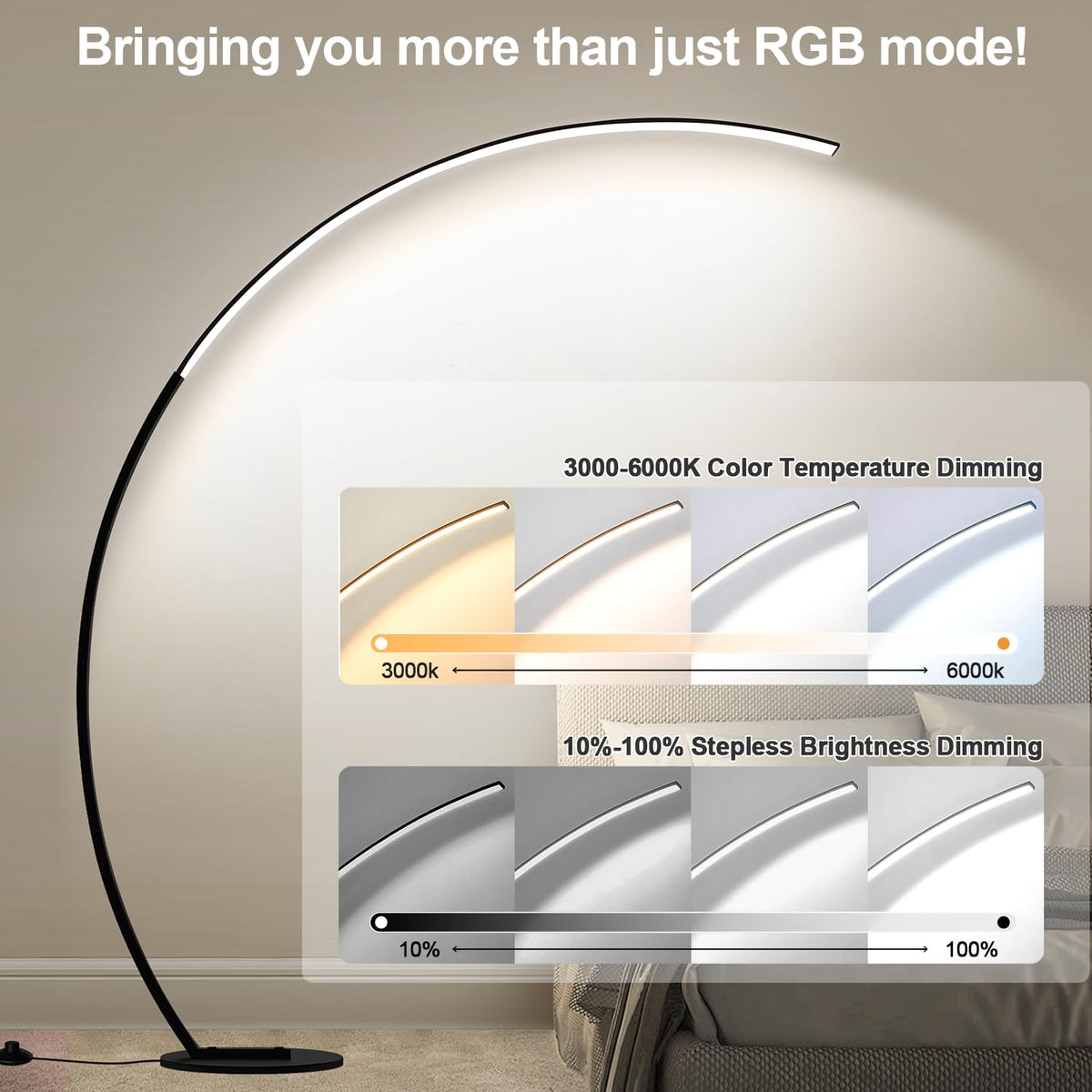 Smart Rgb Floor Lamp With 3 Color Temperatures, Ultra Bright 1800Lm Arc Led Floor Lamps With App & Remote Control, 16 Million Colors, Music Sync, Color Changing Standing Tall Lamp For Living, Bedroom And Gaming Room