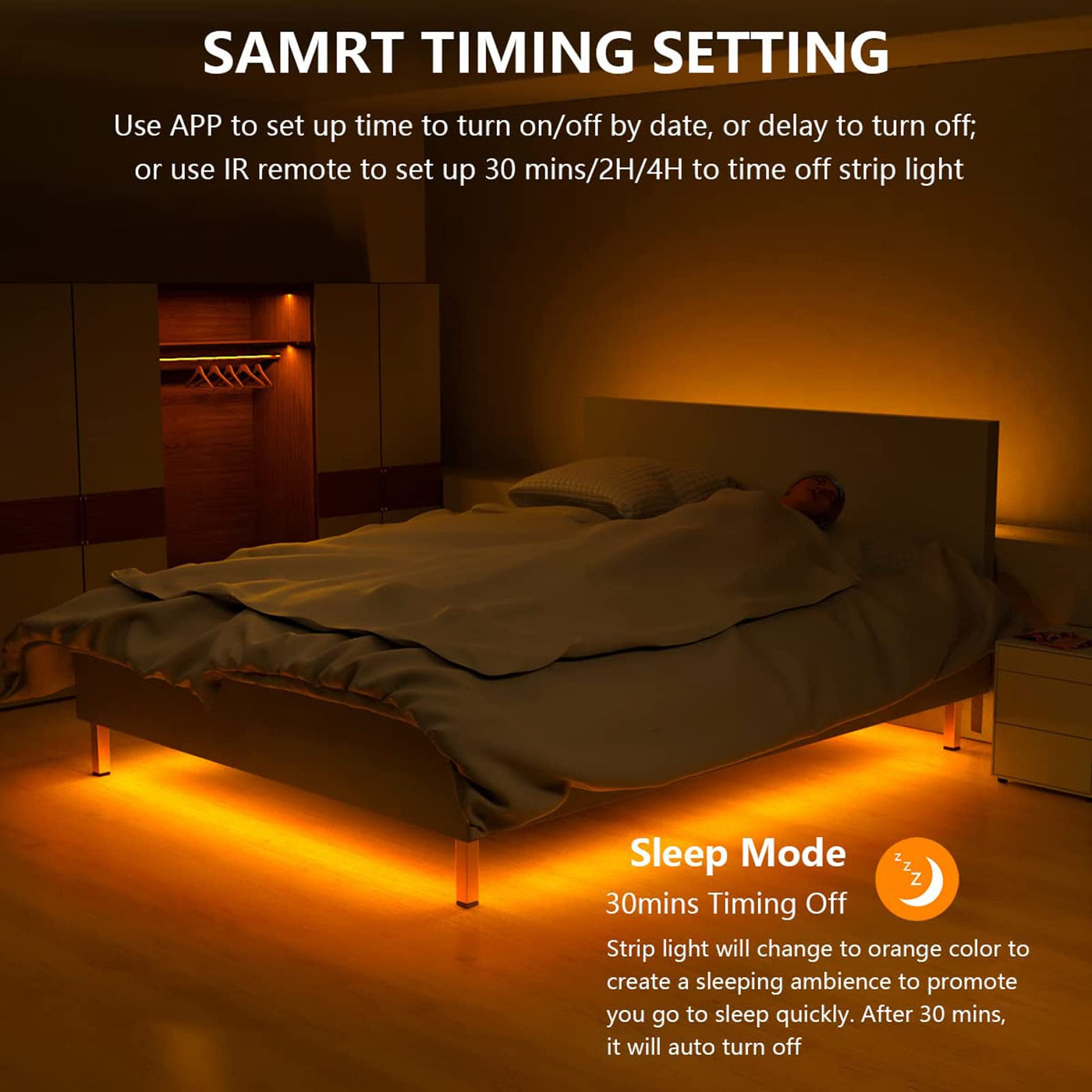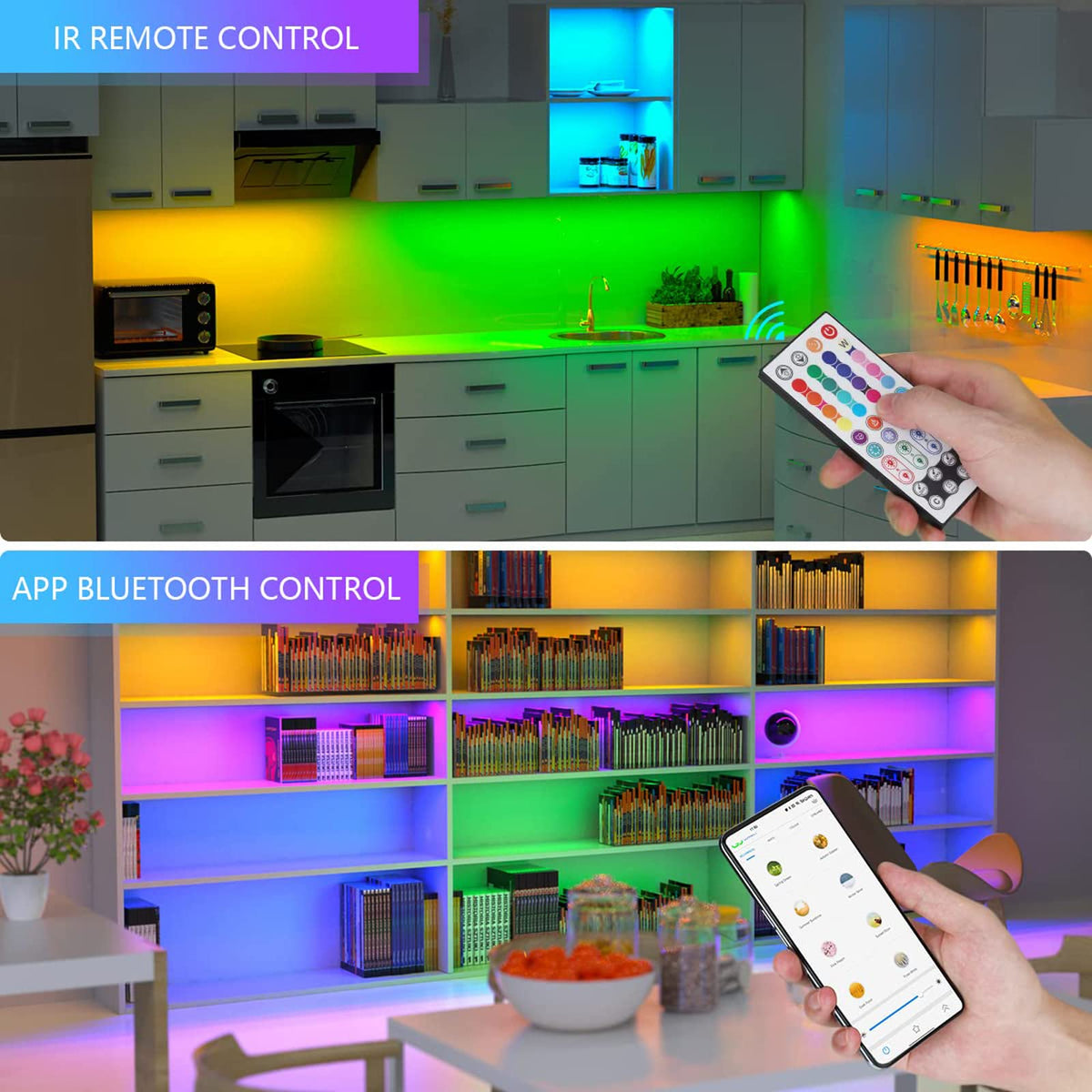 Q: What features does the RGBW Under Cabinet Lighting Kit offer?A: The RGBW Under Cabinet Lighting Kit includes DIY ultra-bright RGBW LED strip lights, allowing for customizable lighting in various colors. It is controlled via an app or an IR remote, offers sound synchronization, and includes smart timing functionalities for scheduling your lighting preferences.