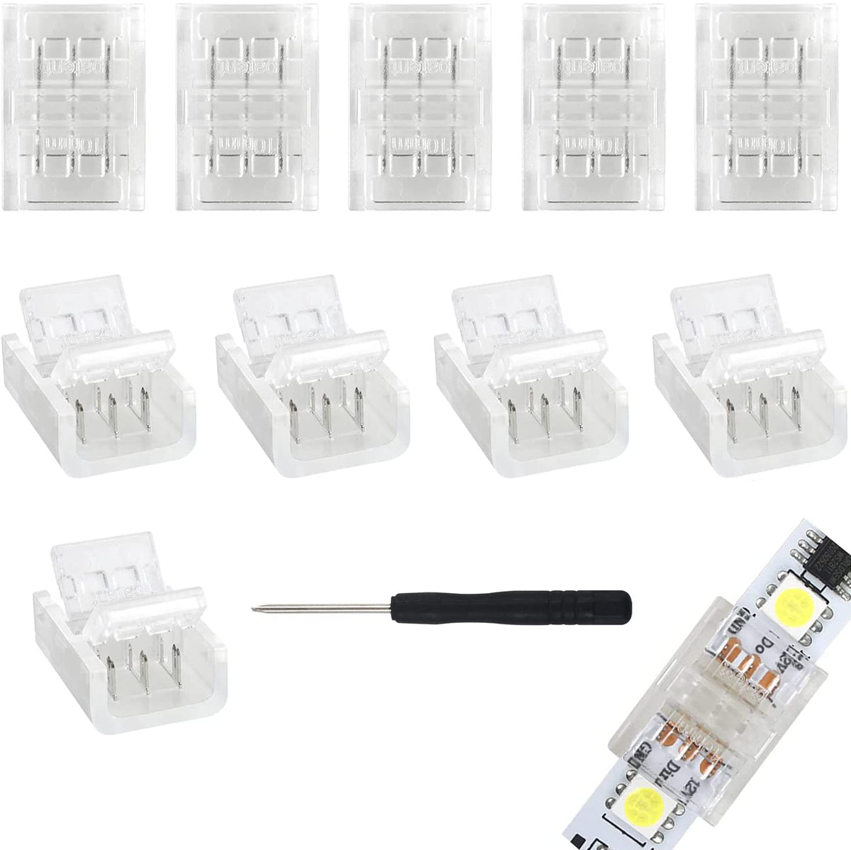 Rgbzone 10Pcs Led Strip Connectors 3 Pin Gapless Solderless Quick Connector For 10Mm Waterproof And Non-Waterproof Ws2811 Ws2812B Led Strip Lights
